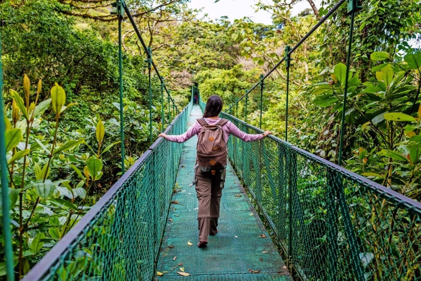 Das Nebelwaldreservat Monteverde bildet zusammen mit den benachbarten Schutzgebieten Santa Elena und dem "Regenwald der Kinder" (bosque de los niños) das grösste zusammenhängende Nebelwaldgebiet Costa Ricas. Die Bäume sind mit unzähligen Epiphyten bewachsen. Riesige Baumfarne erinnern an längst vergangene Zeiten. Der geheimnisvolle Nebelwald ist auch die Heimat des schillernden Quetzal. Bei einer geführten Wanderung über die Hängebrücken tauchen wir in diese einzigartige Lebenswelt ein. Beim “Sky Walk“ schweben wir auf sicheren Brücken zwischen den Baumwipfeln und beobachten die Orchideen, Tillandsien, Bromelien und Vögel aus der Nähe. Nachmittags zur freien Verfügung.