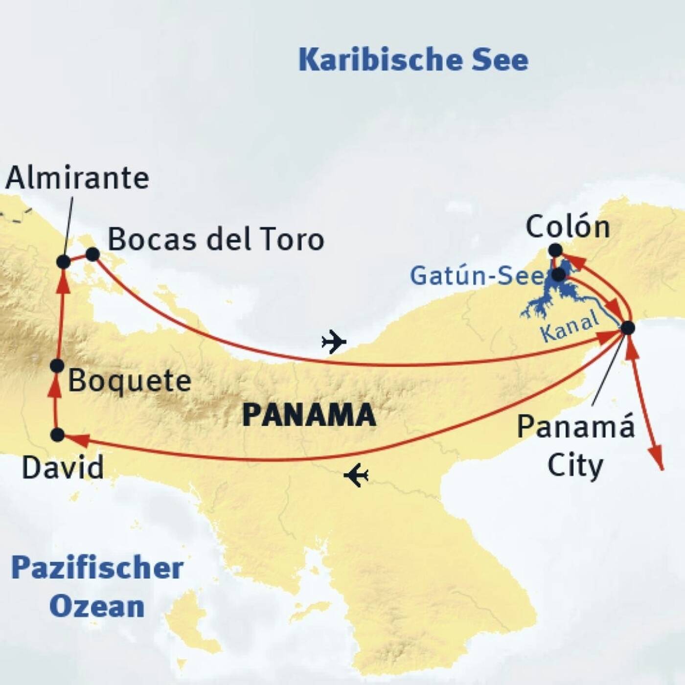 Panamá City - Panamá Kanal - David - Boquete - Almirante - Bocas del Toro - Colón - Gatún See - Panamá City