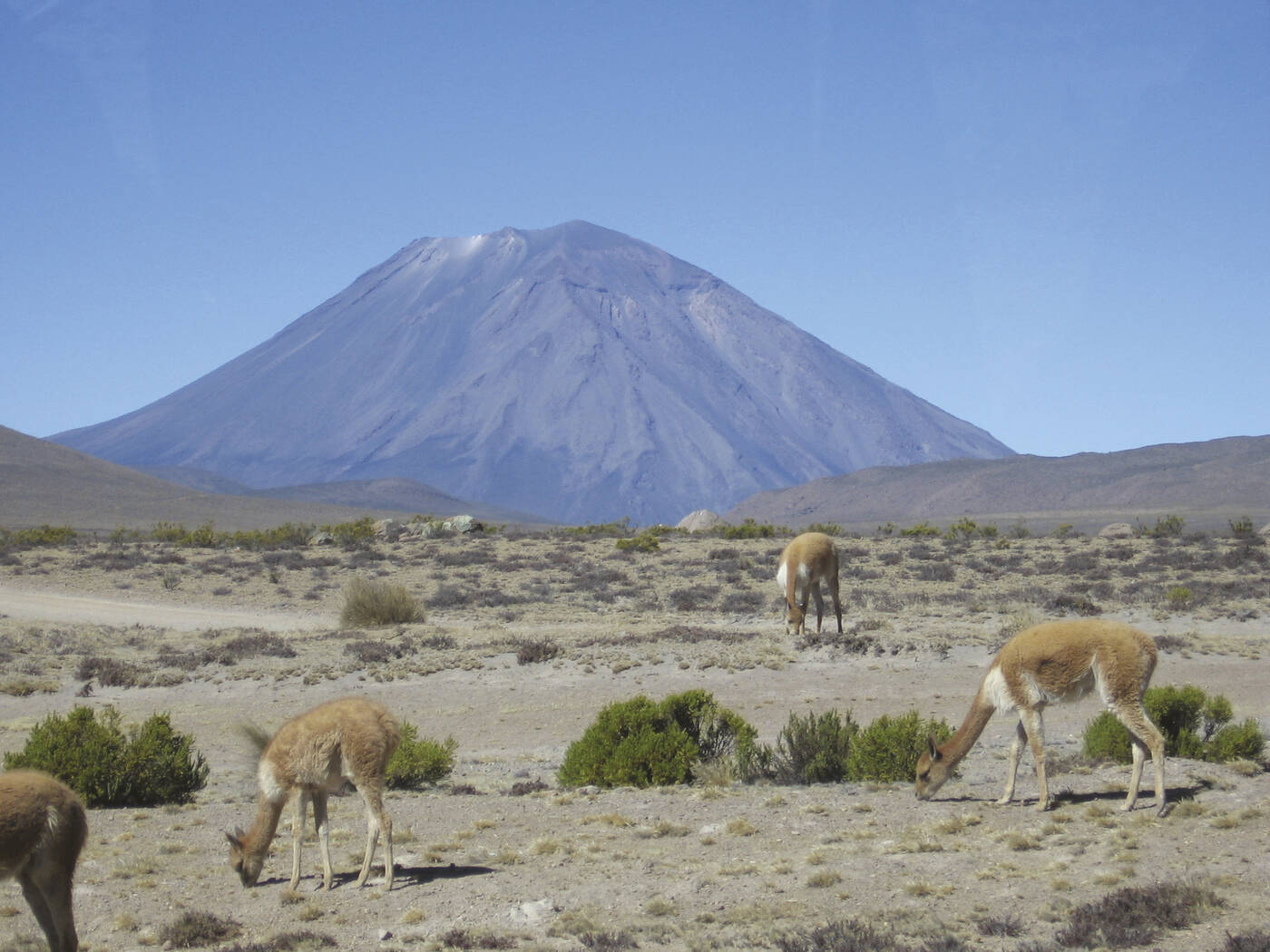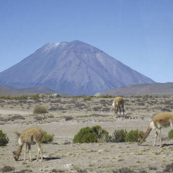 Fahrt über den Patapampa Pass (4.850m) und durch den Nationalpark Pampa Cañahuas mit Vicuñas und Alpacas zum Colca-Canyon (180km), 70 Kilometer lang, bis zu 3.000 Meter tief, umrahmt von den erloschenen Vulkanen Corupuna (6.425m) und Ampato (6.310m). Übernachtung in einer Hosteria in der Nähe des Canyons auf ca. 3.600m.