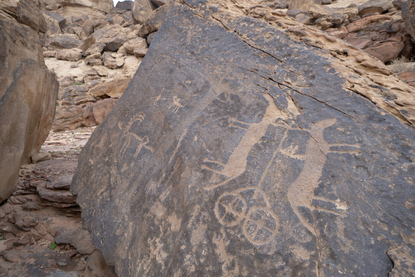 Eine "Gemäldegalerie" vom Neolithikum bis in die Eisenzeit erwartet uns heute in Jubbah. Auf großen Sandsteinfelsen finden wir Malereien und Petroglyphen mit Menschen, Wild- und Haustieren, Vögeln, Göttern und Inschriften auf thamudisch und arabisch (UNESCO-Weltkulturerbe). Weiter geht es durch die Nafud-Wüste an Sanddünen und Lavagebieten vorbei nach AlUla. Abends entspannen wir am Elephant Rock, einem imposanten, monolytischen Sandsteinbogen, der beliebter abendlicher Treffpunkt der Saudis ist. (570 km, 6 Std.)