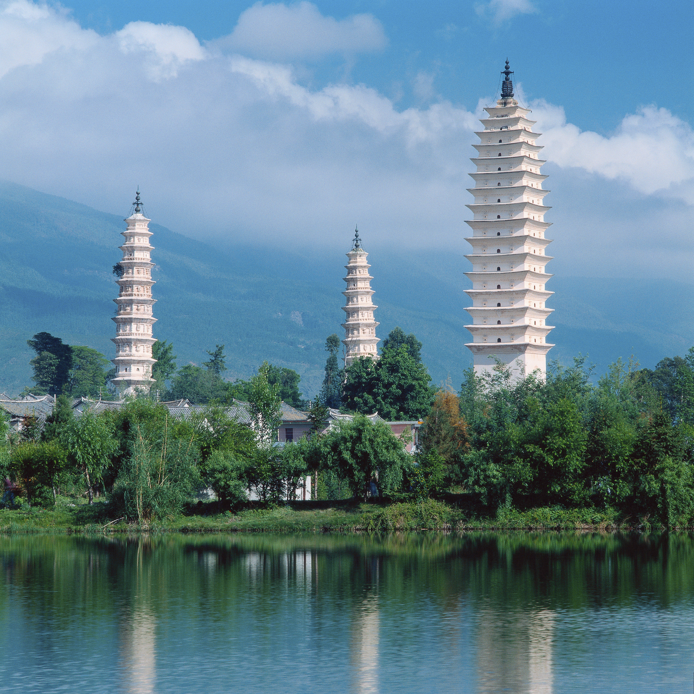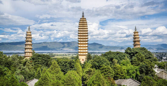 Nach dem Frühstück Fahrt zum Bahnhof. Dort beginnt unsere etwa zweistündige Reise mit dem Hochgeschwindigkeitszug nach Dali, das auf 2.000 Metern Höhe liegt und zu den bedeutendsten kulturhistorischen Städten Chinas zählt. Hier erwartet uns die Besichtigung der drei Pagoden des Chongsheng-Klosters, die mit ihrer beeindruckenden Architektur seit Jahrhunderten ein begehrtes Fotomotiv bieten. Im Anschluss unternehmen wir einen Spaziergang durch die Altstadt von Dali, wo wir das lebendige Straßenleben, traditionelle Gebäude und das besondere Flair dieser historischen Stadt hautnah erleben können. Gemeinsames Abendessen mit leckerer Yunnan-Küche.