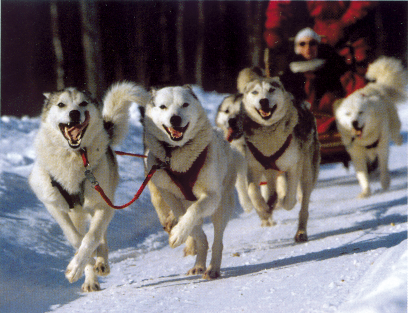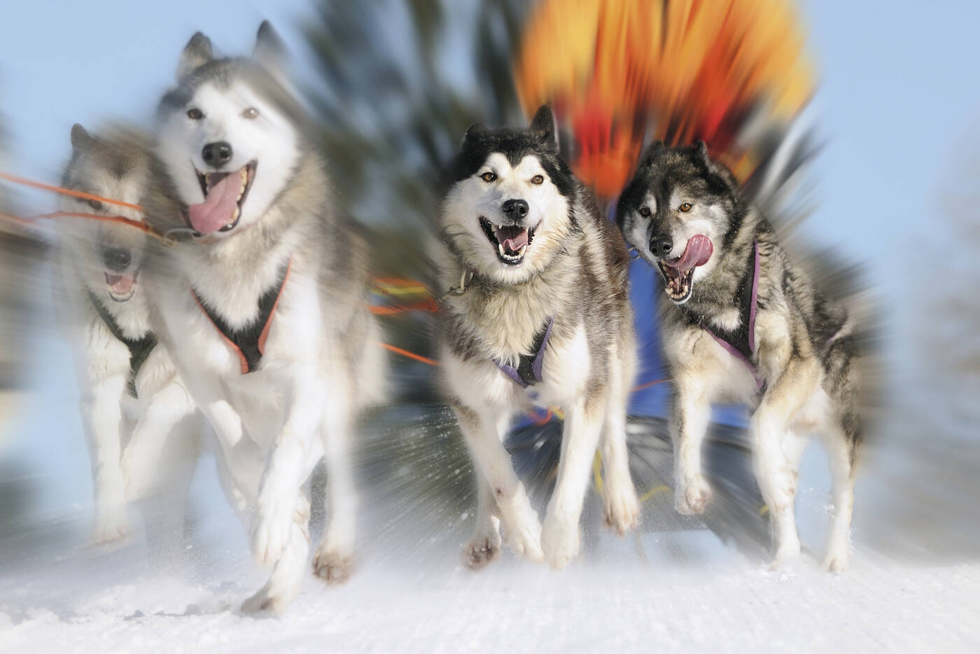 - jeder Teilnehmende führt ein eigenes Gespann von 4 bis 6 Hunden