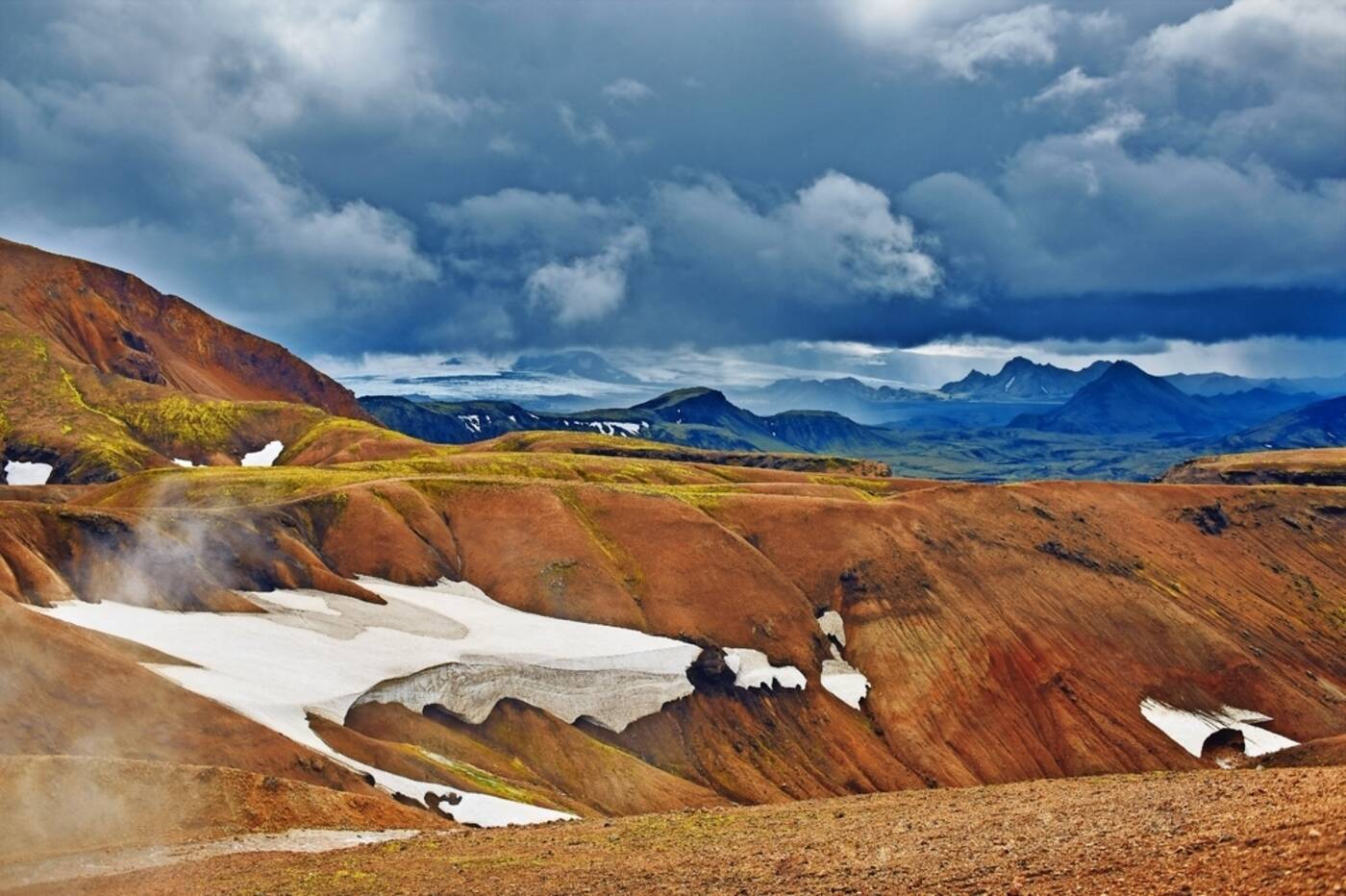 In Kirkjubaejarklaustur verlassen wir die Ringstraße in Richtung Hochland. Über eine Schotterpiste und mit kleinen Flussdurchquerungen erreichen wir die Feuerspalte Eldgjá und das farbenprächtige Liparitgebirge Landmannalaugar. Das Gebiet lädt zu einer Wanderung auf den Aussichtspunkt des Berges Bláhnúkur (943 m) ein. Ein Picknick für unterwegs hat unser Reiseleiter organisiert. Wer möchte, kann in der natürlichen heißen Quelle am Fuße des Berges baden. An den Ausläufern des Vulkans Hekla entlang geht es weiter zu unserer Unterkunft (Tagesdistanz ca. 200 km).