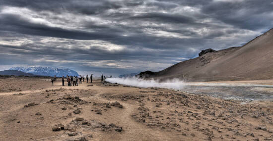 Den heutigen Tag widmen wir der Region rund um den See Myvatn (dt. Mückensee), der sich auf der aktiven Vulkanzone befindet. Hier treffen "Himmel und Hölle" aufeinander. Pseudokrater, Schwefeldämpfe und bizarre Lavaformationen gehören ebenso zum Erscheinungsbild, wie fruchtbare Ebenen mit saftigem Grün und einem vielfältigen Vogelleben. Besonders für die außerordentlich große Anzahl verschiedenster Entenarten ist der See Myvatn bei Vogelliebhabern bekannt. Die eindrucksvollen schwarzen Lavaformationen von Dimmuborgir sind Überreste eines Lavasees, dessen Damm nach teilweiser Erkaltung brach, so dass die bereits erstarrten Teile als bizarre Formationen zurückblieben. Am Fuße des Bergrückens Namafjall liegt ein Solfatarengebiet, das wir uns näher anschauen werden. Hier gibt es zahlreiche brodelnde Schlammtöpfe und Heißdampfquellen. Freuen Sie sich auch auf ein entspannendes Bad im Myvatn Naturbad. Sie haben Gelegenheit im warmen Geothermalwasser bei 38° - 41°C unter freiem Himmel zu baden (fakultativ, mit Eintritt ca. € 50,- p.P.; Badesachen nicht vergessen!). Abendessen und Übernachtung wie am Vortag (Tagesdistanz ca. 210 km).