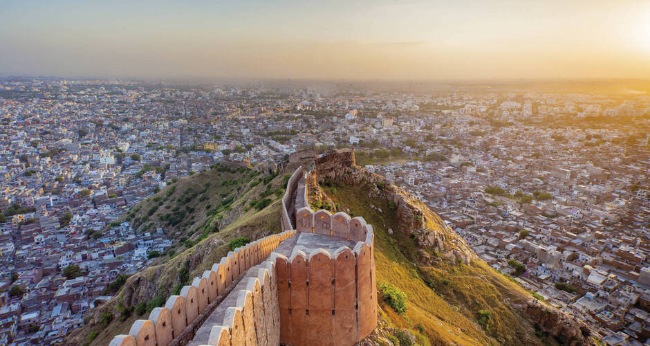 Am Vormittag unternehmen wir einen Ausflug in das nahegelegene Amber. Mit dem Jeep fahren wir hinauf zum eindrucksvollen Amber Fort, das majestätisch auf einem Hügel thront. Das Amber Fort, eine Palastanlage aus dem 16. Jahrhundert, begeistert durch seine kunstvoll verzierten Hallen, prachtvollen Innenhöfe und filigranen Spiegelsäle. Wir lassen uns von der einzigartigen Mischung aus hinduistischer und muslimischer Baukunst verzaubern und genießen den fantastischen Ausblick auf das umliegende Tal. Auf dem Rückweg nach Jaipur legen wir einen Fotostopp am berühmten Palast der Winde ein, dessen zarte Fassade mit ihren zahllosen Fenstern ein beliebtes Fotomotiv ist. Anschließend tauchen wir bei einem Bummel durch die quirligen Basarstraßen der Altstadt in das farbenfrohe Alltagsleben von Jaipur ein.