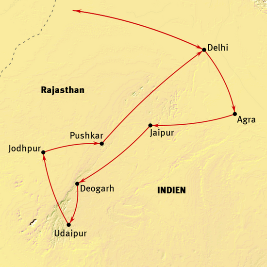Delhi - Agra - Jaipur - Deogarh - Udaipur - Jodhpur - Pushkar - Delhi