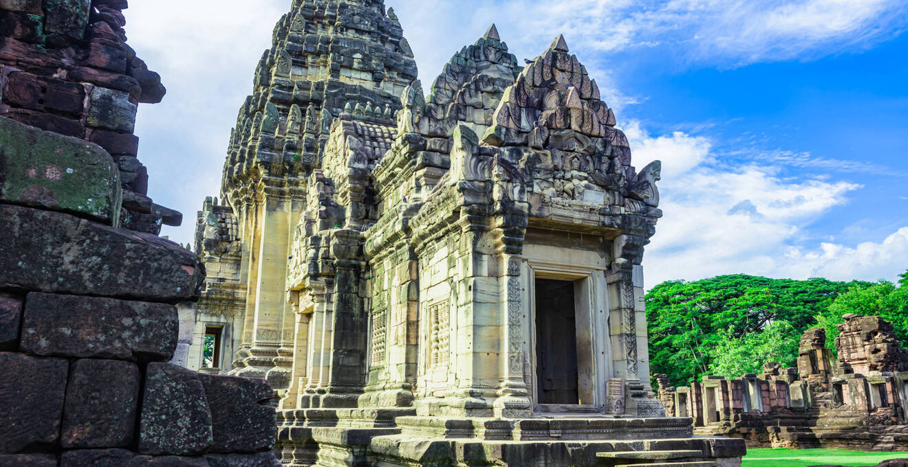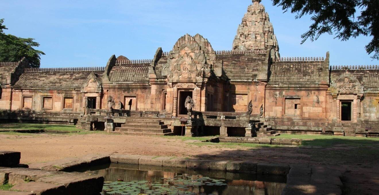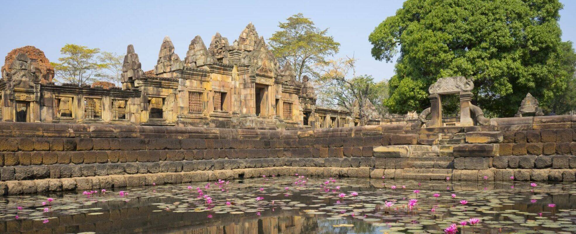 In der Nähe von Buriram, eine knappe Fahrstunde durch die ländlichen Dörfer, in denen man das authentische Leben Thailands erlebt, und auf den letzten Kilometern kurvig bergauf, liegt die Tempelanlage Prasat Hin Phanom Rung spektakulär auf einem erloschenen Vulkan. Die Anlage selbst befindet sich auf einer Höhe von etwa 381 Metern. Die Tempelanlage ist der Wohnstätte Shivas gewidmet und stammt aus dem 10. und 13. Jahrhundert, vom damals dort herrschenden König Narendraditya errichtet.