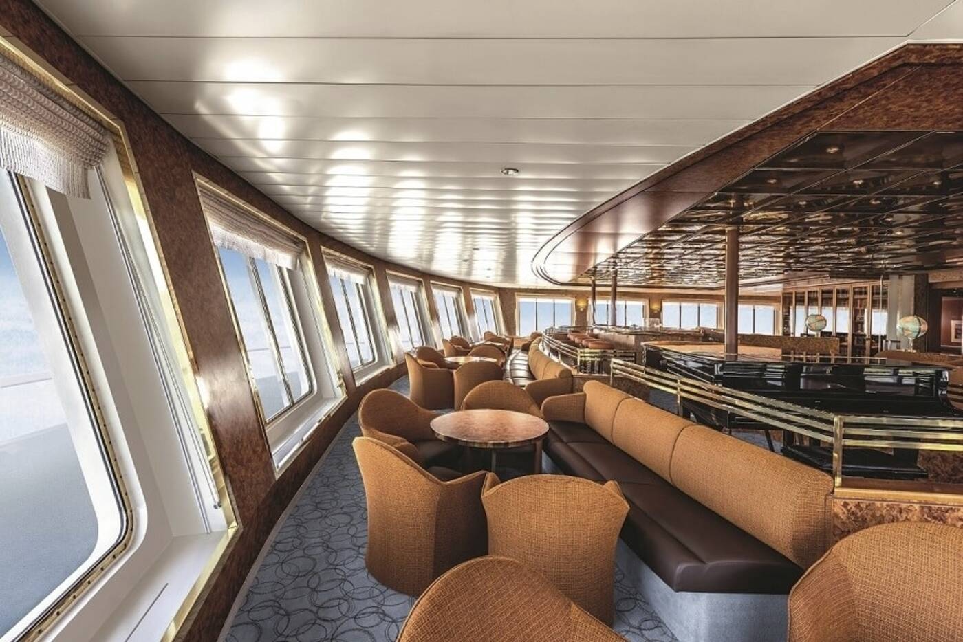 - Kat. H = Heritage Suite, Zweibett | Deck 6 // Fenster, 44 m² Doppelbett, Wohnbereich, großes Bad/WC, Flachbildschirm