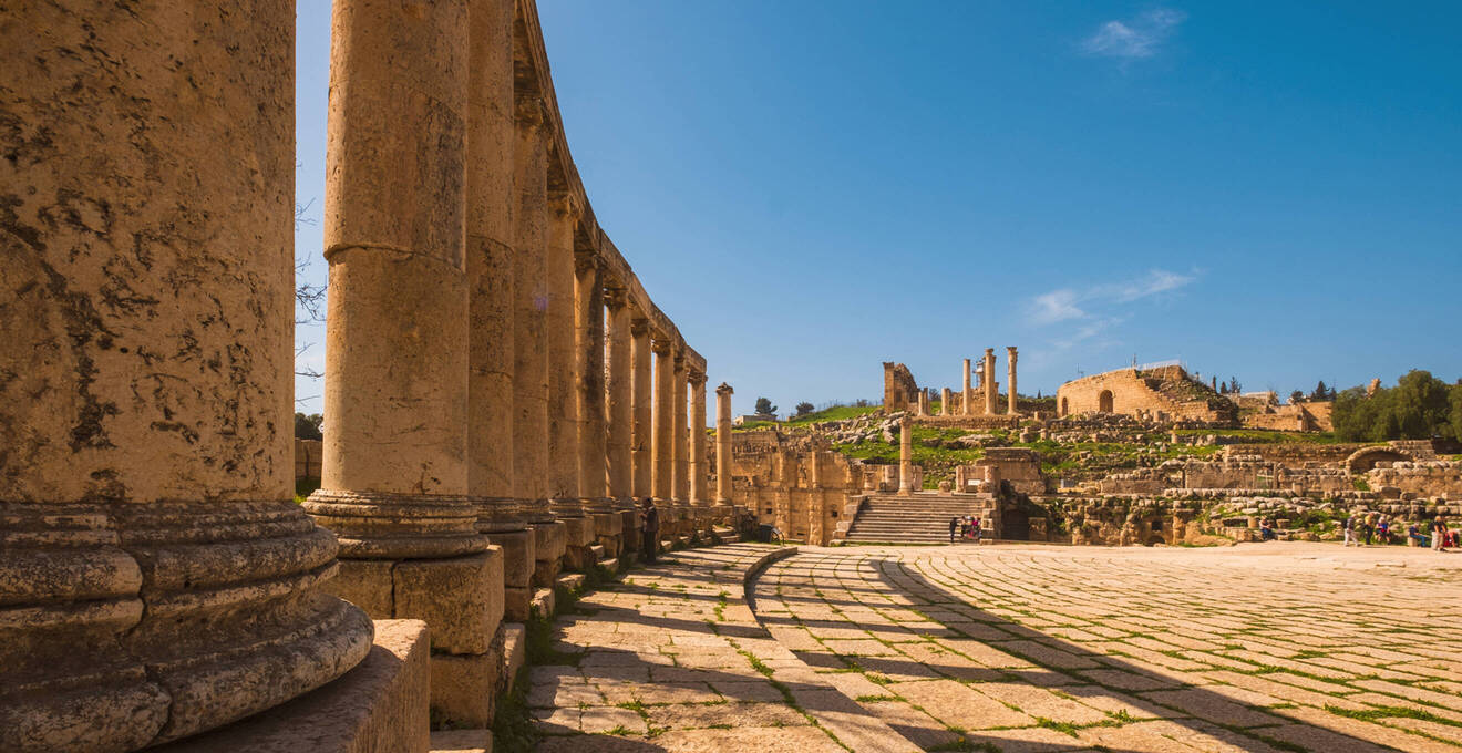 Nach einem traumhaften Frühstück mit Al Umi, Früchten und Hummus machten wir uns am folgenden Tag auf zur Zitadelle von Amman, die auf dem Jabal Al Qal’a thront. Der Ausblick über die Hauptstadt bis zum Königspalast – einfach atemberaubend. Besonders beeindruckend war das Amphitheater, in dem in den Sommermonaten tatsächlich noch Aufführungen stattfinden. Weiter ging es nach Jerash, wo wir durch den byzantinischen Torbogen traten und eine Stadt aus vergangenen Zeiten entdeckten. Schritt für Schritt entfernten wir uns aus der Gegenwart und tauchten ein in ein vergangenes Zeitalter.