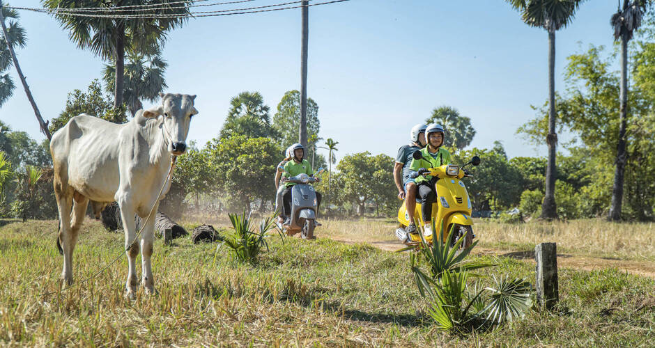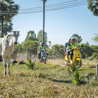 Heute erkunden wir das ländliche Kambodscha auf besondere Weise: bequem als Mitfahrer auf einer Vespa mit eigenem Fahrer. So lassen sich die kleinen Wege und Dörfer rund um Siem Reap besonders authentisch und entspannt erleben.