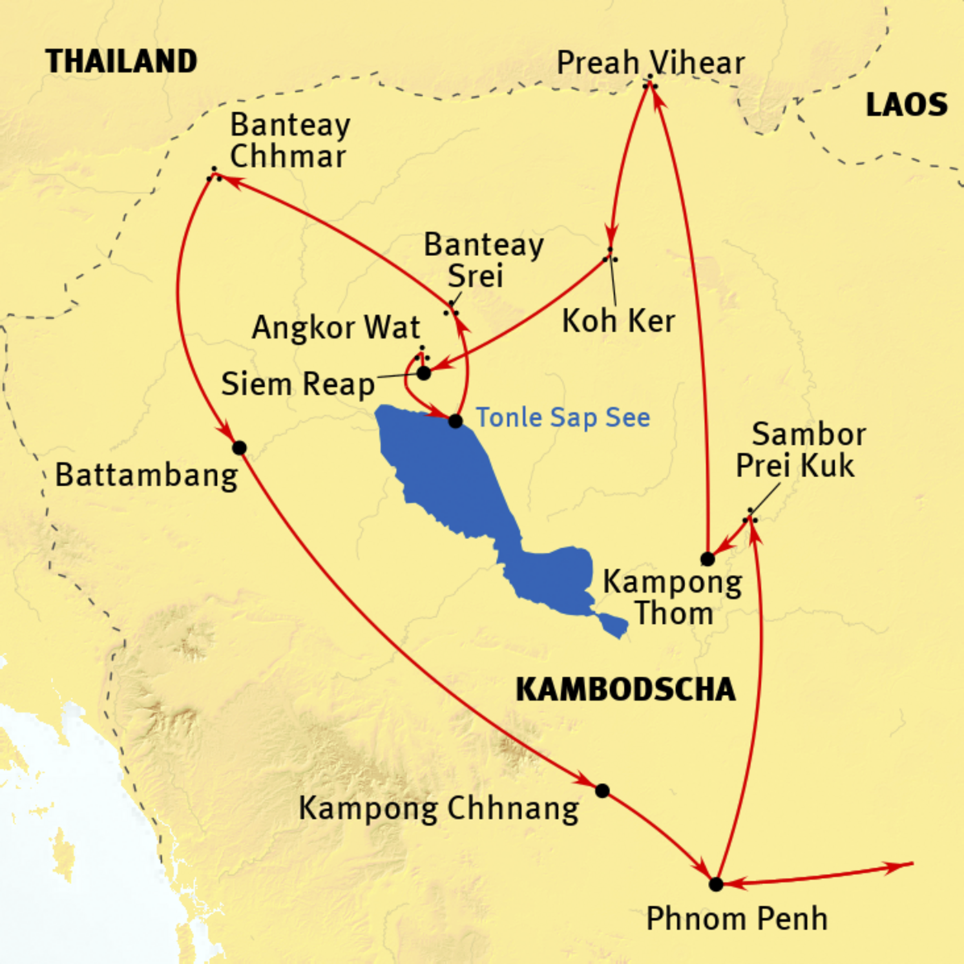 Phnom Penh - Kampong Thom - Preah Vihear - Siem Reap (Angkor) - Banteay Chhmar - Battambang - Kampong Chhnang