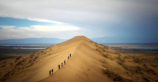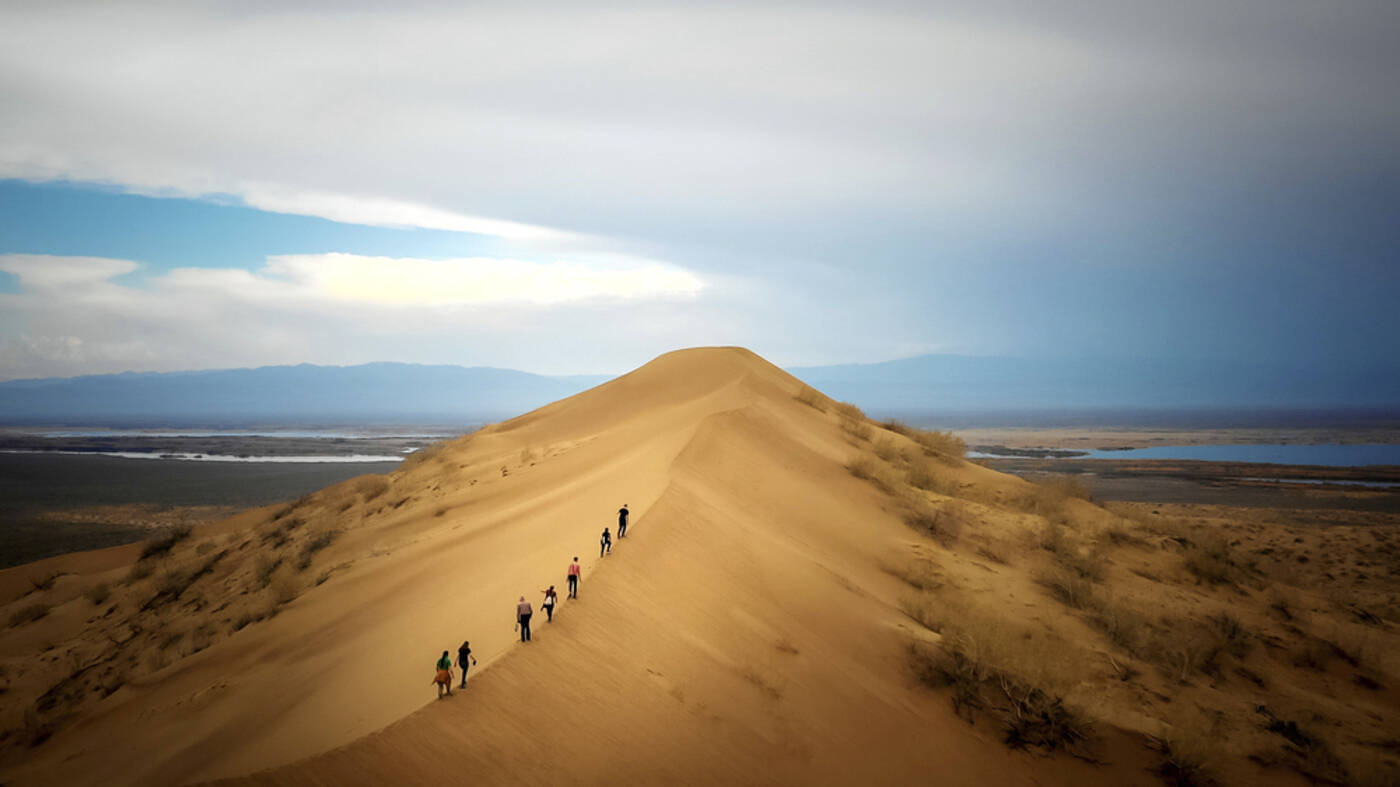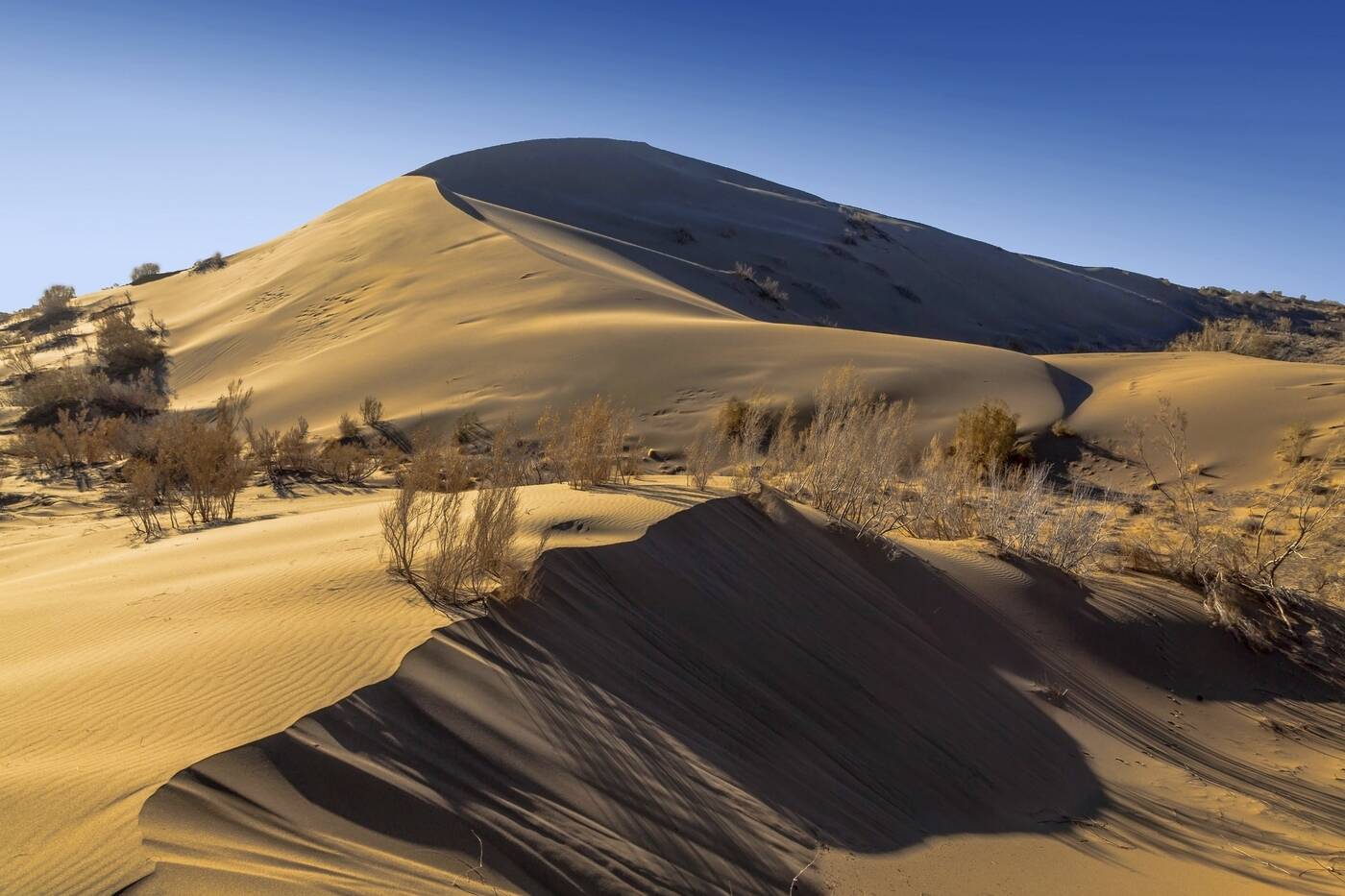 Entlang des Kapchagay-Stausees, durch Trockensteppe, Halbwüste und felsiges Gebiet, fahren wir in den Altyn Emel, größter Nationalpark Kasachstans und UNESCO-Weltkulturerbe, mit einer reichen Flora und Fauna. Ankunft in Baschi und Mittagessen. Anschl. Ausflug zur „Singenden Düne“, hier erzeugt der Sand ein Geräusch, das dem Klang einer Orgel ähnelt.