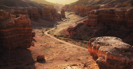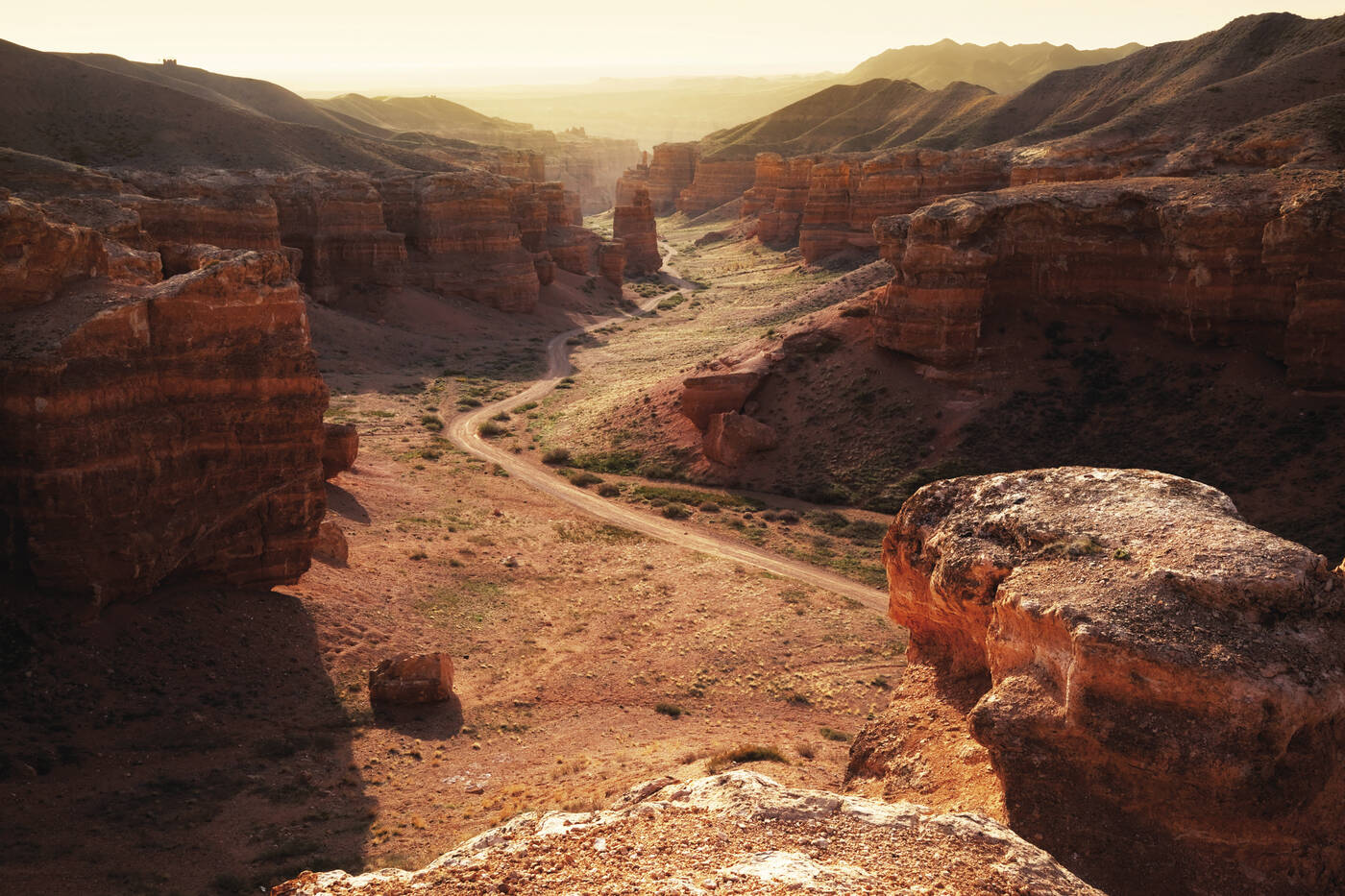 Auf unserer heutigen Etappe führt uns die Route durch einige der eindrucksvollsten Landschaften des östlichen Tieflands. Zunächst besuchen wir den malerischen Canyon des Flusses Temerlik, dessen sanft geschwungene Felsformationen und farbige Sedimentschichten einen faszinierenden Einblick in die geologische Geschichte der Region geben. Im Anschluss erwartet uns ein weiterer Höhepunkt: der Tscharyn-Canyon, oft als „kleiner Bruder“ oder gar Doppelgänger des berühmten Grand Canyon in den USA bezeichnet. Mit einer Länge von rund 154 Kilometern sowie bis zu 150–300 Meter hohen Felswänden gilt er als der größte Canyon Zentralasiens.