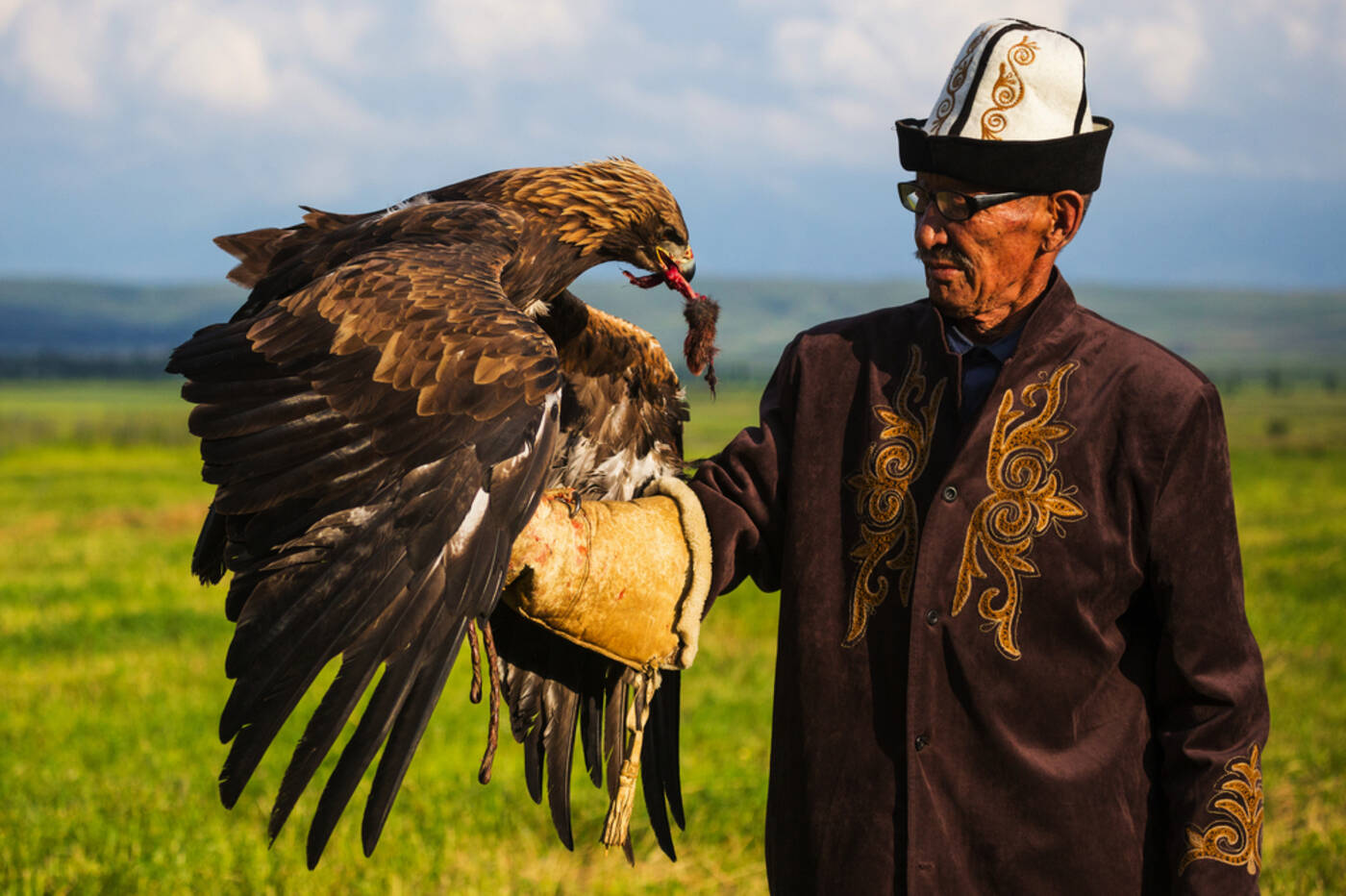 Weiter entlang am malerischen Südufer des Issyk-Kul-Sees, nach Bokonbaevo. Unterwegs ein Abstecher in die Jety Oguz-Schlucht mit fantastischen Felsformationen aus rotem Sandstein, wo seit eh und je Nomaden den Sommer mit ihren Schaf- und Pferdeherden verbringen. Wanderung im „Märchen-Tal“ mit bizarren Sandsteingebilden und Bademöglichkeit unterwegs. In der Nähe von Bokonbaevo besuchen wir auf einer alpinen Wiese einen Steinadler-Jäger. Die Jagd hoch zu Ross mit einem abgerichteten Steinadler gehört zu den großen Leidenschaften der Kirgisen.