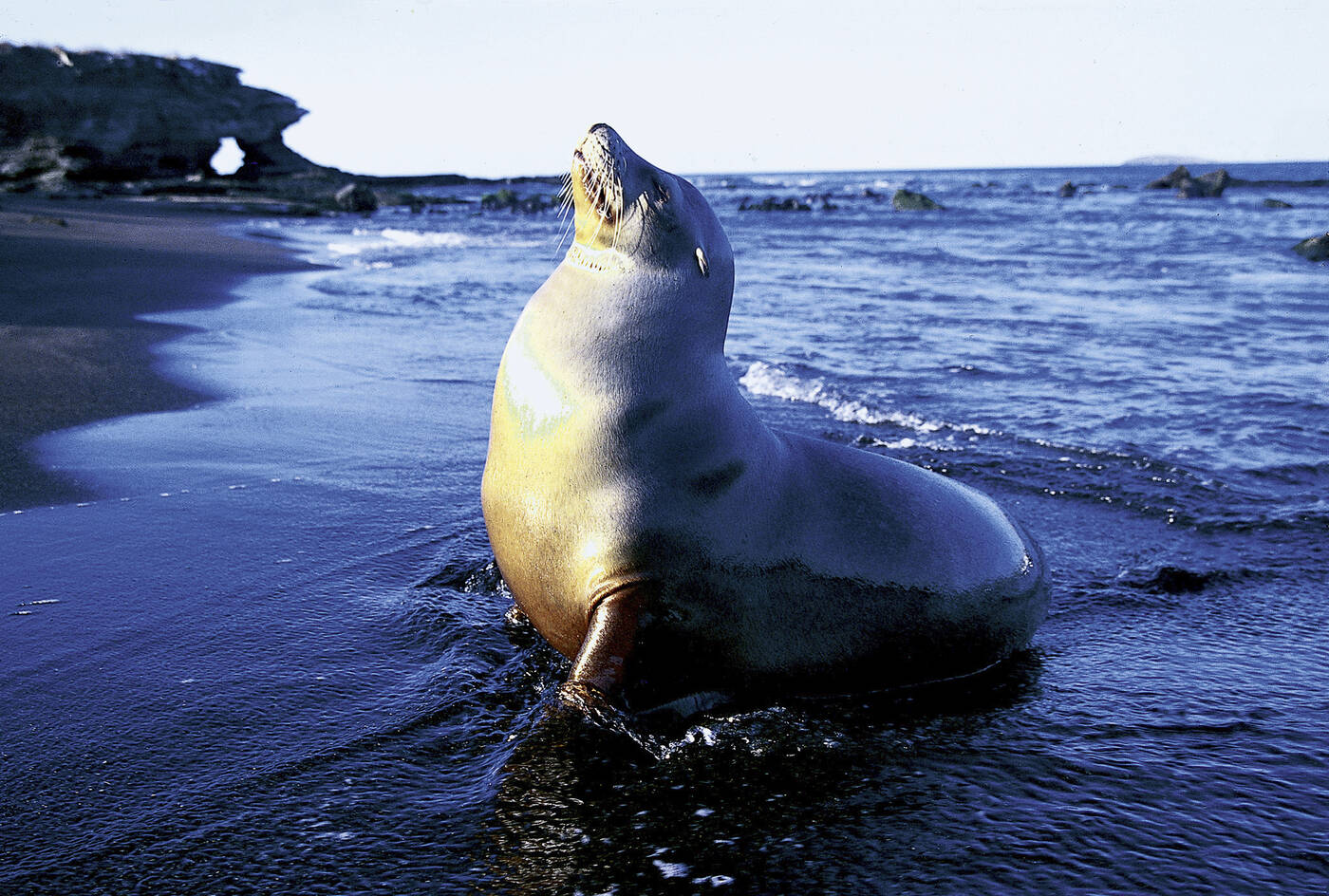 Heute erreichen wir Española (Hood): Vorm. „nasse“ Landung in der Gardner Bay an einem fantastischen weißen Korallenstrand. Möglichkeit zum Schwimmen und Schnorcheln inmitten einer bunten Unterwasserwelt. Nachm. trockene Landung in Punta Suarez mit Seelöwen, Meerechsen, großen Kolonien von Blaufußtölpeln und Nazcatölpeln sowie der einzigen Albatros-Kolonie des Archipels (saisonal). Dazu das „Blow Hole“ mit aufzischenden Wasserfontänen.