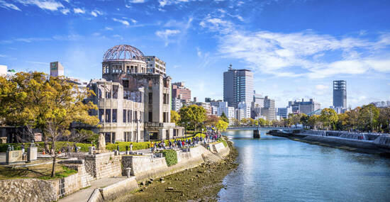 Am Morgen verlassen wir Kyoto mit dem Bus in Richtung Hiroshima. Ein Zwischenstopp in Himeji gilt der Besichtigung der strahlenden „Burg des weißen Reihers“ (UNESCO-Weltkulturerbe). Japans größte und schönste Burg wurde im 17. Jh. zu ihrer heutigen Form ausgebaut und erstrahlt nach umfassender Restaurierung wieder in ihrer ganzen Pracht. Am späten Nachmittag erreichen wir Hiroshima, im Westen der Hauptinsel Honshu an der Inlandsee gelegen. Für die Übernachtung steht uns nur leichtes Handgepäck zur Verfügung. Das Hauptgepäck wird mit einem Kurierdienst nach Osaka geschickt und dort an Tag 13 nach Ankunft im Hotel ausgehändigt.