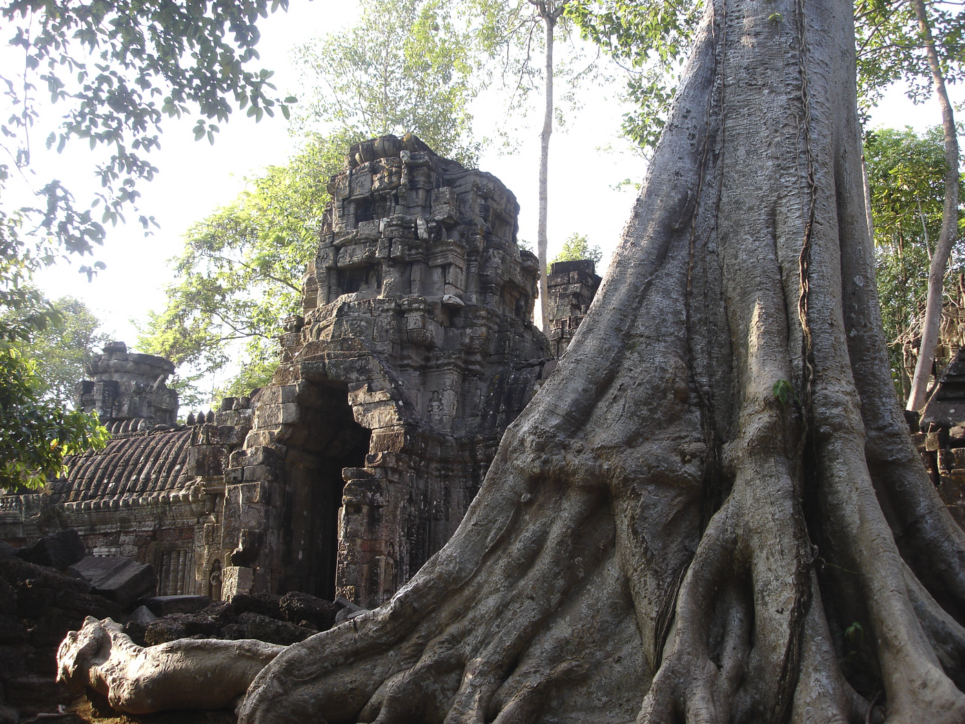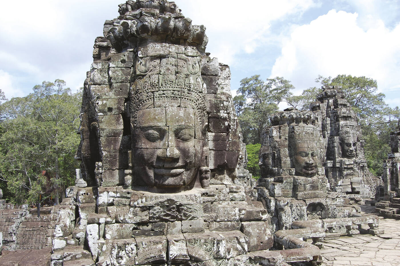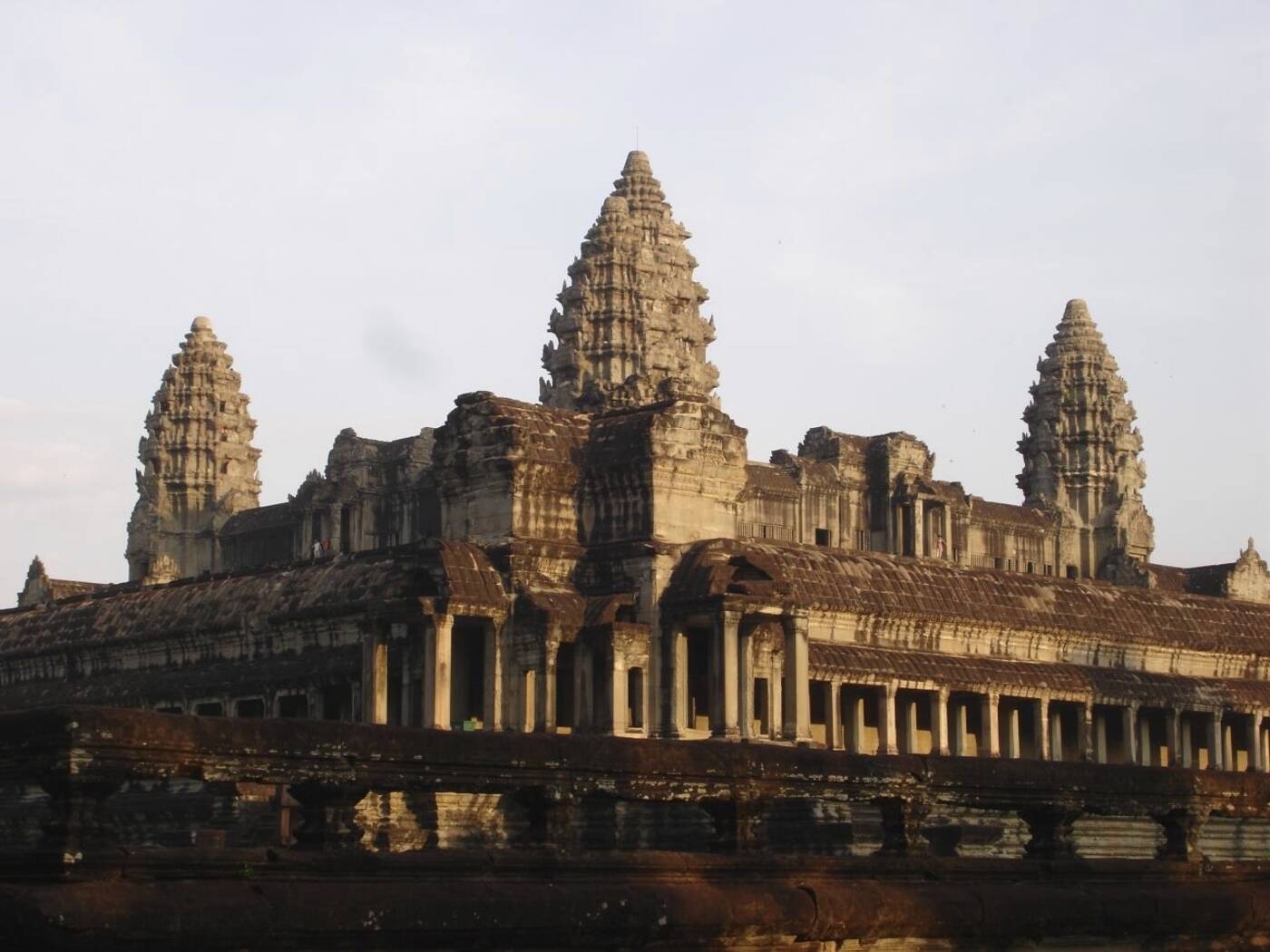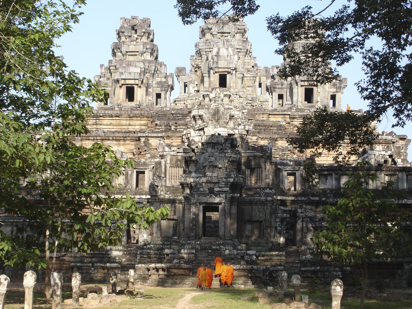 Ausführliche Besichtigung des Zentralbezirks von Angkor: Zunächst Sonnenaufgang am Angkor Wat. Anschließend der Ta Prohm Tempel, der teilweise noch sehr malerisch von Urwaldbäumen überwuchert wird. Danach Besuch von Angkor Thom, der Bayon, die Baphong-Pyramide, Phimeanakas, Elefanten-Terrasse. Nachmittags dann für den Sonnenuntergang zum Phnom Bakheng.