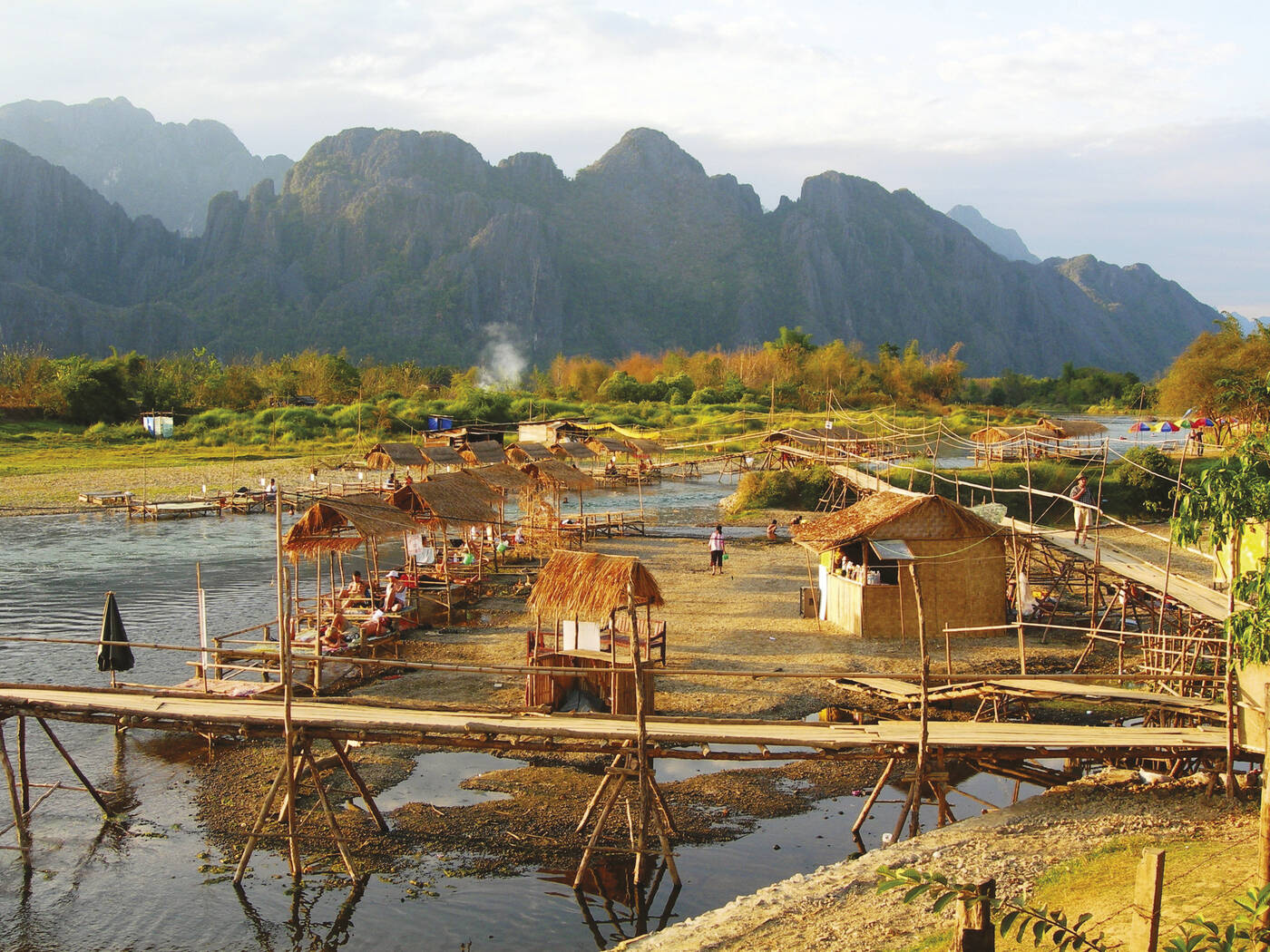 Vormittags ca. zweistündige Zugfahrt nach nach Vangvieng. Der Ort liegt malerisch am Song-Fluss. Besichtigung der Höhle Tham Jang in den bizarren Kalksteinwänden am Flussufer.