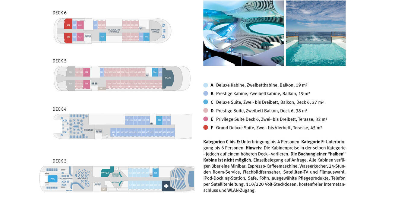 Gemütliche und gut belüftete Gemeinschaftsräume, puristisches Design und Blick aufs Meer, markante Außenlinien, eine Marina, die den Zodiac®-Schlauchbooten Ausfahrt und Rückkehr erleichtert, HiTech-Ausrüstung, ein Außenpool, ein multisensorischer Unterwassersalon. Die PONANT Explorersrepräsentieren die neue Schiffsgeneration, die Entdeckung und Luxus auch in den abgelegensten Weltgegenden verbindet