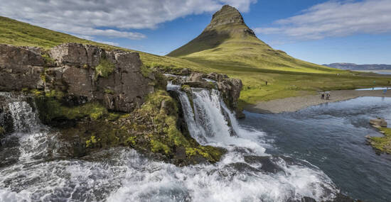 Nach dem Besuch von Kirkjufell mit Wasserfall geht es in die 8.000 Jahre alte Vatnshellir-Höhle mit farbigen Lavasteinen und faszinierenden Formationen (Helm & Lampe werden gestellt). Nach dem Mittagessen Küstenwanderung zwischen Arnarstapi und Hellnar mit Basaltsäulen, Vogelbeobachtung und Ausblicken auf Meer, Klippen, Berge und den Snæfellsjökull-Gletscher.