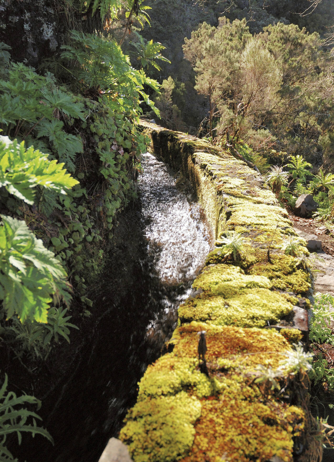Wir wandern, absteigend von den westlichen Ausläufern der Paúl-Ebene, zur Quelle einer uralten Levada. Hier sind wir in einem mystischen Lorbeerwald (UNESCO-Weltnaturerbe) und folgen nun länger der alten Levada, vorbei an den Ruinen einer alten Mühle, bis wir wieder urbanes Gebiet erreichen, wo die Levada durch Felder und Gärten führt. Am Ende des Kanals erreichen wir ein kleines Dorf, von dort aus Abstieg mit herrlichen Blicken auf das Meer nach Porto Moniz. Unser Hotel in der Nähe der Meerwasserschwimmbecken aus Lavagestein. (Ca. 16 km, 6 h, -1250 Hm).