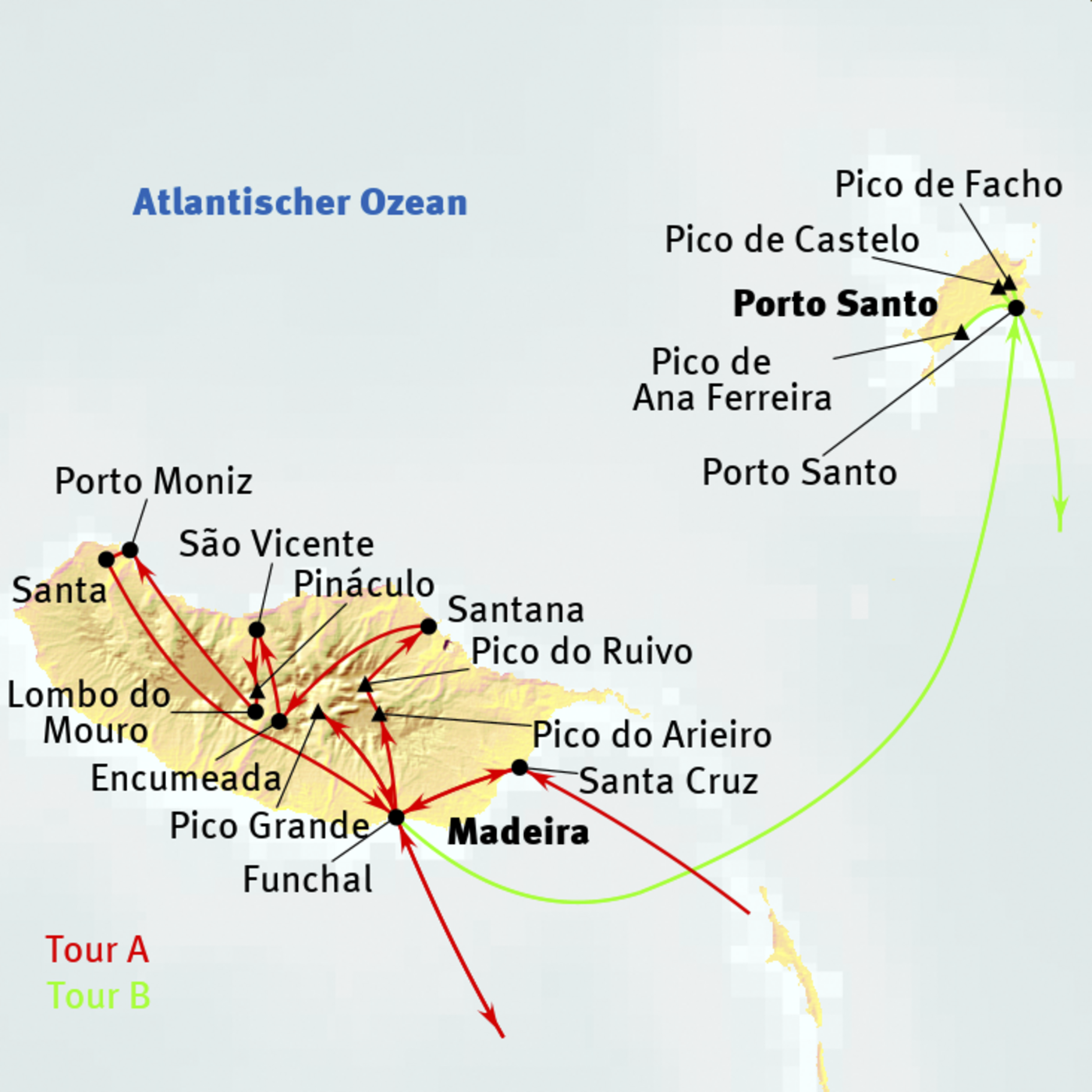 - Deutsch sprechende Reiseleitung ab/an Madeira vom 2. -10. bzw. ab Madeira/ an Porto Santo 2. -13. Tag (Tag 7 und Tag 14 = freie Tage ohne Reiseleitung)