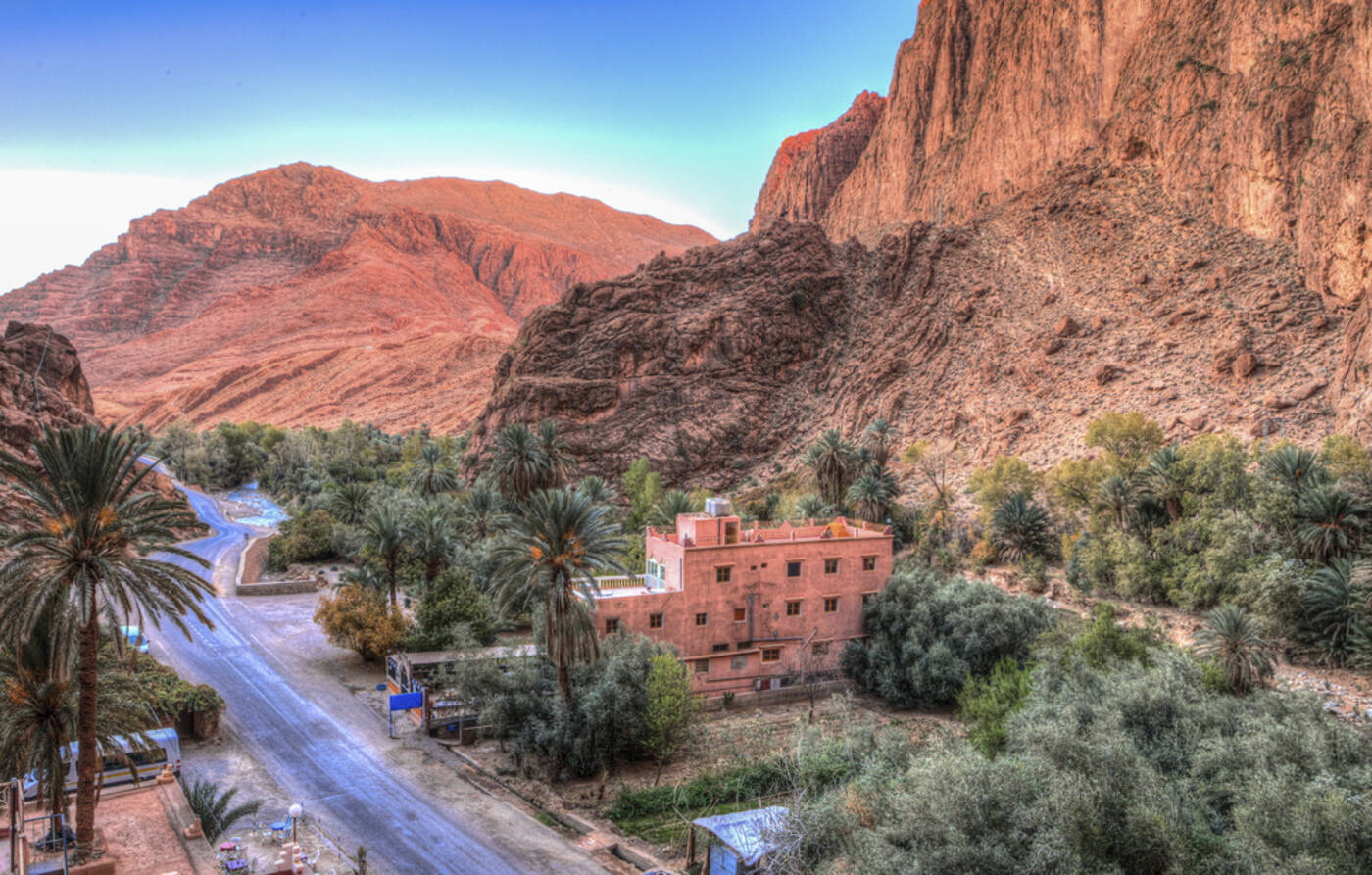 Fahrt zur Berberstadt Tinerhir im Süden des Hohen Atlas. Unterwegs Stopp bei traditionellen Bewässerungssystemen. Nach der Besichtigung der imposanten Todra-Schlucht mit bis zu 300 m hohen Felswänden, werden wir mit einem wohlverdienten leckeren Couscous, zubereitet von einer lokalen Familie, belohnt. (230 km, 5 Std.)