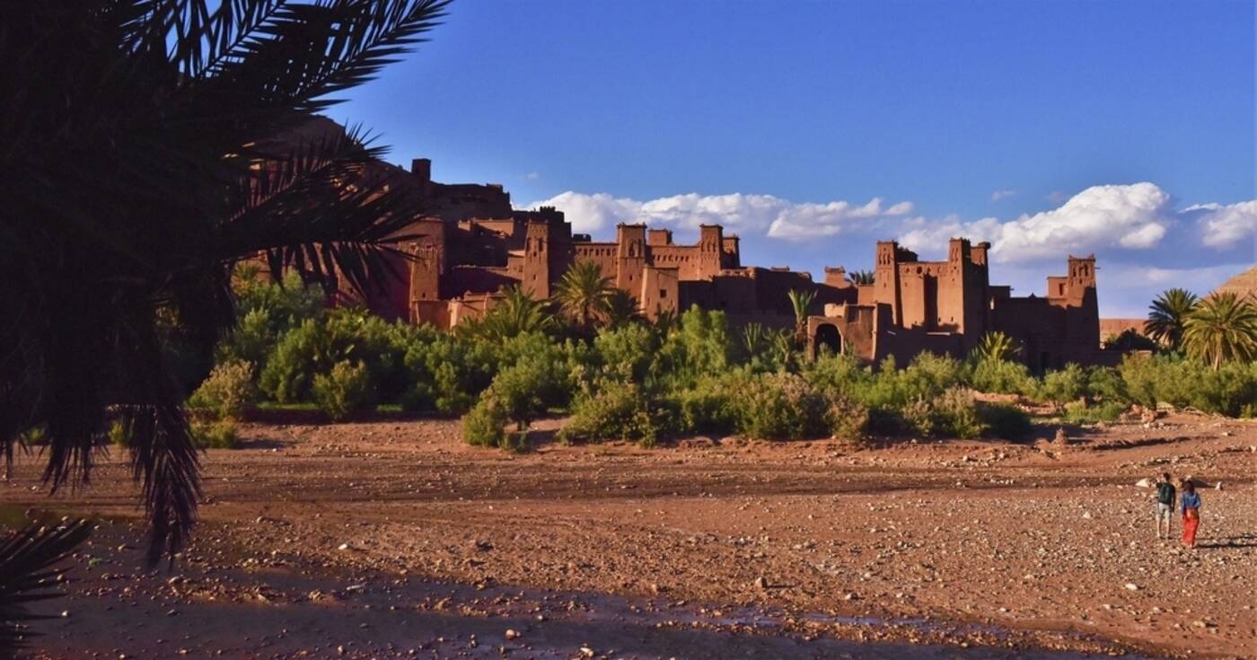 Entlang der Straße der Kasbahs fahren wir nach Ouarzazate und besuchen das Atlas-Filmstudio. Danach die beeindruckende Lehm-Festung Ait Ben Haddou (UNESCO-Weltkulturerbe). Nachmittags passieren wir den Hohen Atlas erneut, diesmal über den Tizi n'Tichka-Pass mit Ziel Marrakesch. (340 km, 6,5 Std.)
