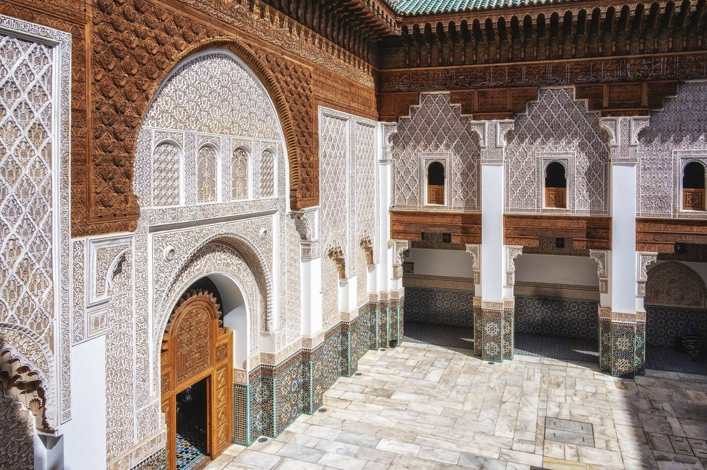 Besichtigung von Marrakesch. Wir sehen die Koutoubia-Moschee, die Saadier-Gräber, den Bahia-Palast und die Ben Youssef-Koranschule. Nach einem Bummel durch die Medina geht es spätnachmittags zum Djemaa el Fna-Platz mit Künstlern, Magiern, Geschichtenerzählern und Gauklern.