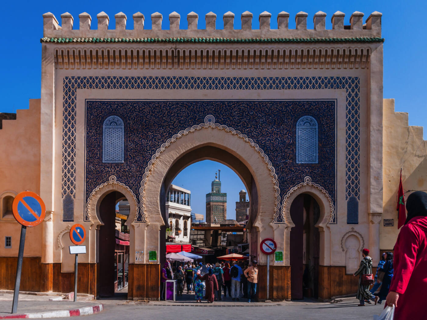 Ein ganzer Tag steht Ihnen zur Besichtigung des geschichtsträchtigen Fès, der ältesten der vier Königsstädte, zur Verfügung. Sie besuchen den Aussichtspunkt „Borj Sud“, das Blaue Tor und die Medrese Bou Inania. Lassen Sie sich danach von der Medina (UNESCO-Welterbe) begeistern. Dieses verwirrende Labyrinth aus Gassen liegt innerhalb der intakten und von monumentalen Toren durchzogenen Stadtmauern. Beeindruckende Paläste, Moscheen, Museen und das Handwerkerviertel verleihen Fès einen ganz besonderen Charme (80 km, 1,5 Std.).