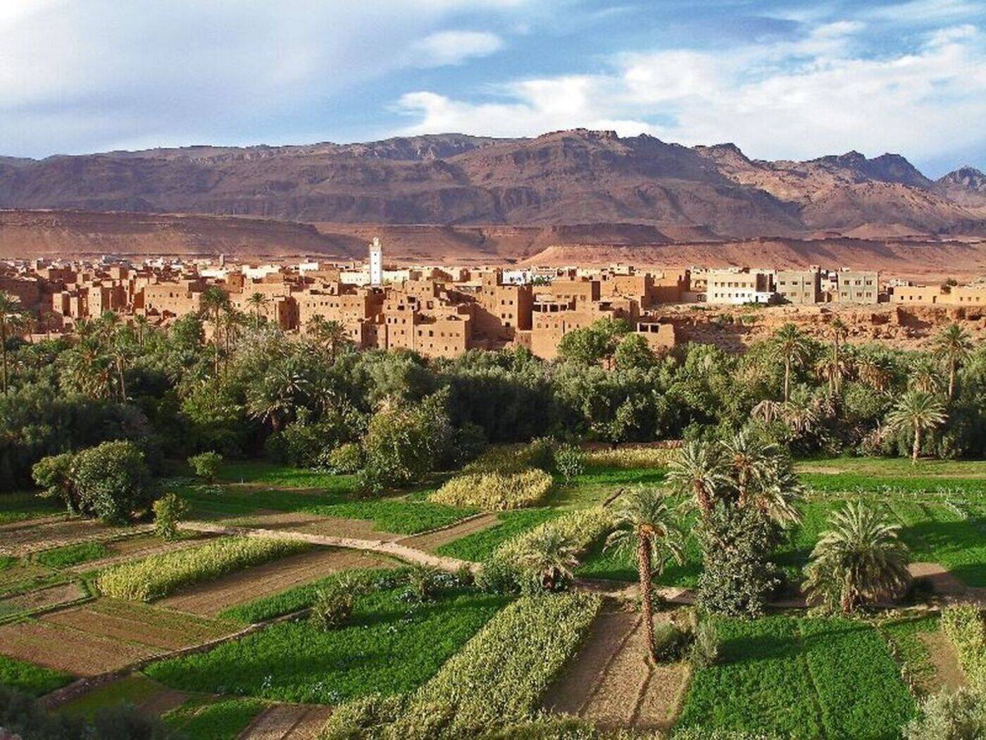 Durch wüstenhafte Landschaft geht es zur Kasbah-Stadt Tinerhir mit großer Palmerie und altem Berberviertel. Danach Fahrt durch die spektakulär, von steilen Felswänden flankierte Todra-Schlucht. Dann entlang der malerischen Straße der Kasbahs, vorbei an zahlreichen befestigten Lehmburgen bis nach Ouarzazate und Besuch der Kasbah Taourirt. In Ouarzazate wurden Filme wie „Krieg der Sterne“, „Kundun“, „Himmel über der Wüste“, „Babel“, „die Päpstin“ und einige Bibelfime gedreht. Sie übernachten direkt bei den Filmstudios. Vielleicht haben Sie Lust, sich die Filmkulissen näher anzuschauen (Eintritt Filmstudios € 10,- pro Person, v.O. zu zahlen). (Tageskilometer ca. 320 km, 6 Std.).