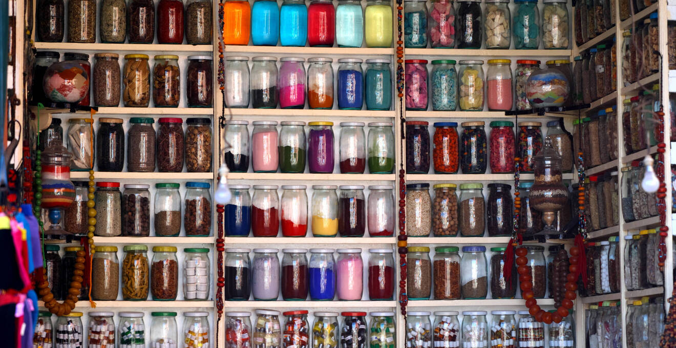 Moulay führt uns durch eine enge Gasse, an deren Ende der Eingang zu der grünen Apotheke „Rosa Huile“ liegt. Ein Angestellter des Geschäftes, Said, hält uns einen Vortrag über die Produkte, die verkauft werden. Er spricht perfekt Deutsch, denn er hat in Berlin gelebt. Said preist alles sehr unterhaltsam und witzig an. Es gibt viele Sorten Tee und Gewürze, Cremes, Salben und Öle. Wenn man Said Glauben schenken kann, sind sie alle seeeeehr gesund.