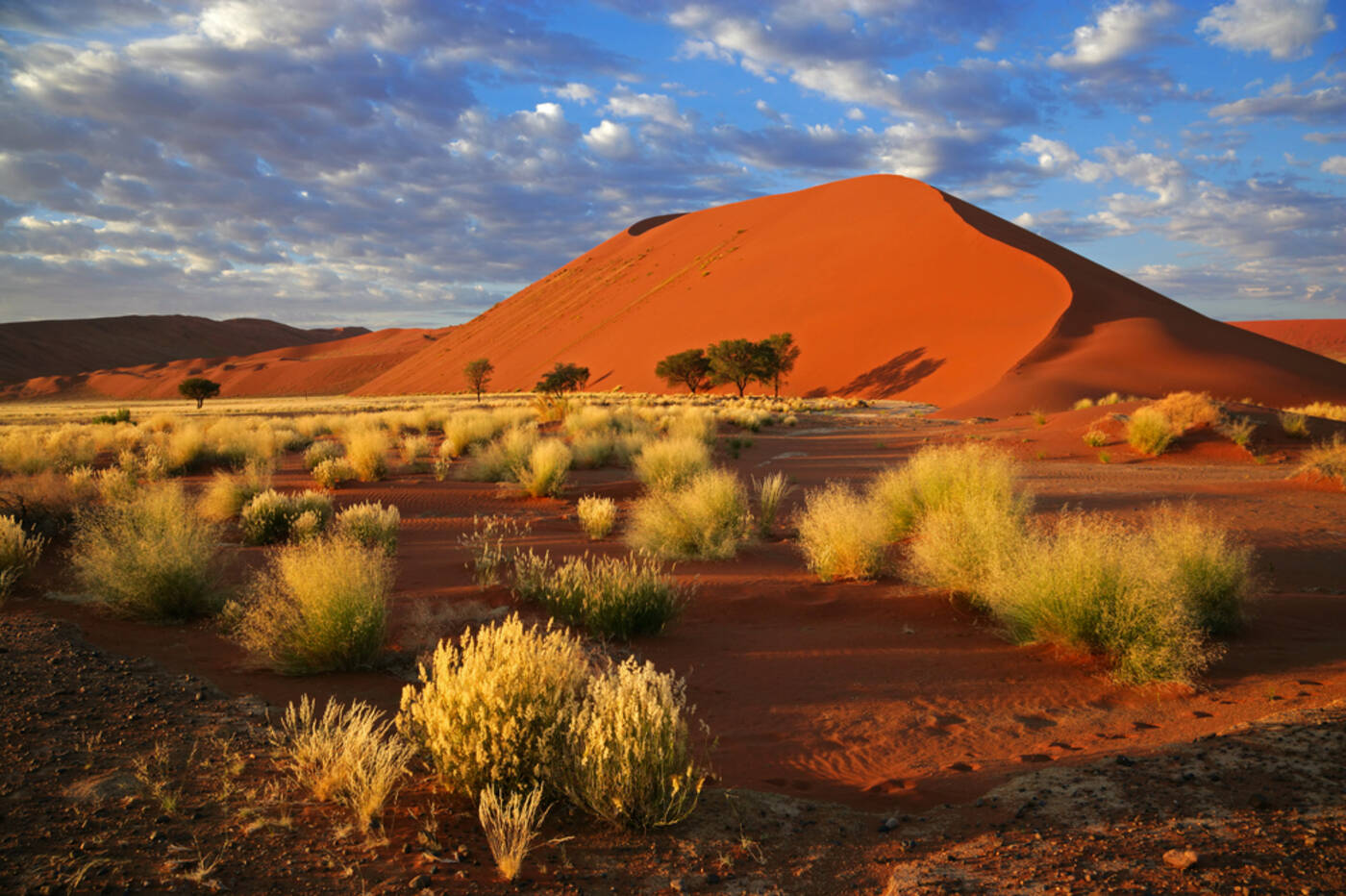 Am frühen Morgen ist die schönste Zeit für das Dünenspektakel Sossusvlei. So weit das Auge reicht, erstrecken sich bis über 300 m hohe Dünen, die sich je nach Sonnenstand in den unterschiedlichsten Farben präsentieren. Die letzten Kilometer zum Vlei sind nur per Allrad zu erreichen. Wer nicht selbst durch den Sand fahren möchte, kann auf dem Parkplatz umsteigen und sich zum Vlei fahren lassen (Bezahlung vor Ort). Auf dem Rückweg kleine Wanderung im Sesriem Canyon (falls nicht mit Wasser gefüllt).