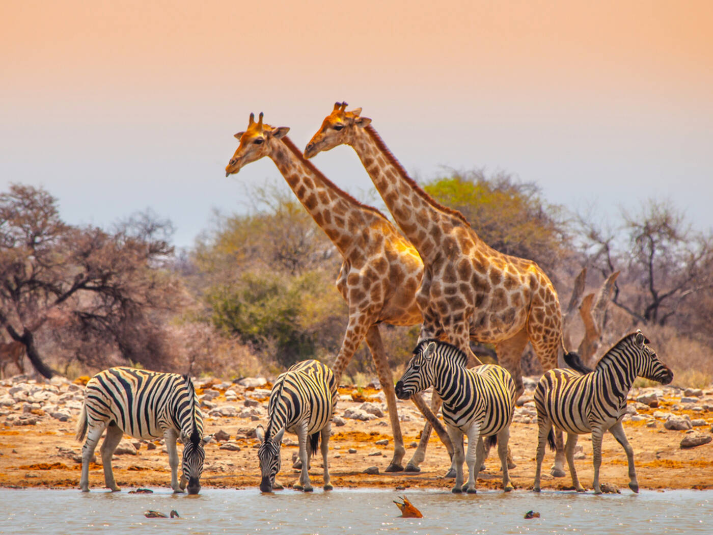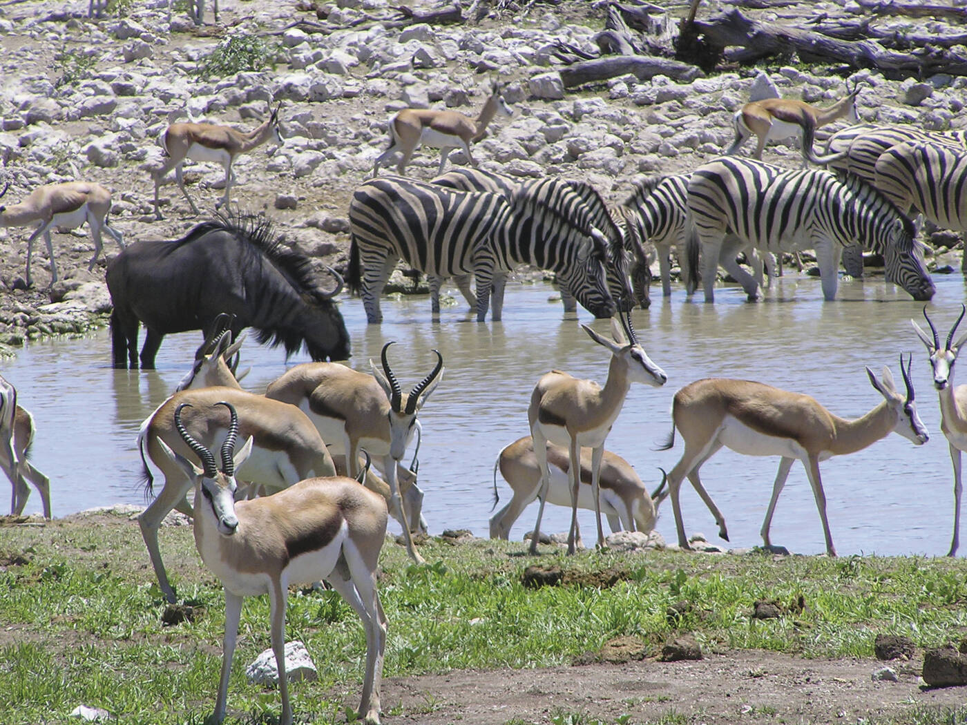 Fahrt über Outjo zum Etosha-Nationalpark. Am Nachmittag erste Pirschfahrt im eigenen Fahrzeug. Der Etosha-Park gehört zu den großartigsten und wichtigsten Wildschutzreservaten Afrikas. Die Fläche von rund 22.000 km² beheimatet nahezu die gesamte Palette der afrikanischen Tierwelt.