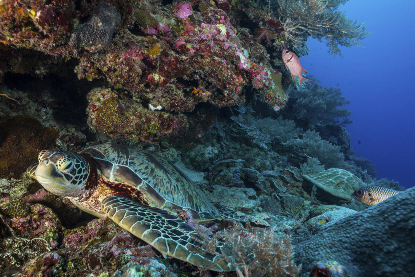 Wir treffen uns mit lokalen Rangern, die uns Einblicke in das Projekt zum Schutz der Meeresschildkröten geben.. Anschließend unternehmen wir einen Sapziergang zur Vogelbeobachtung. Helen Reef, gelegen in den südwestlichen Inseln Palaus, ist ein großes, geschlossenes Atoll mit weitläufigen Riffplatten, einem komplexen Kanalsystem und einer kleinen Insel – einem wichtigen Nistplatz für Meeresschildkröten sowie zahlreiche Seevogelarten.