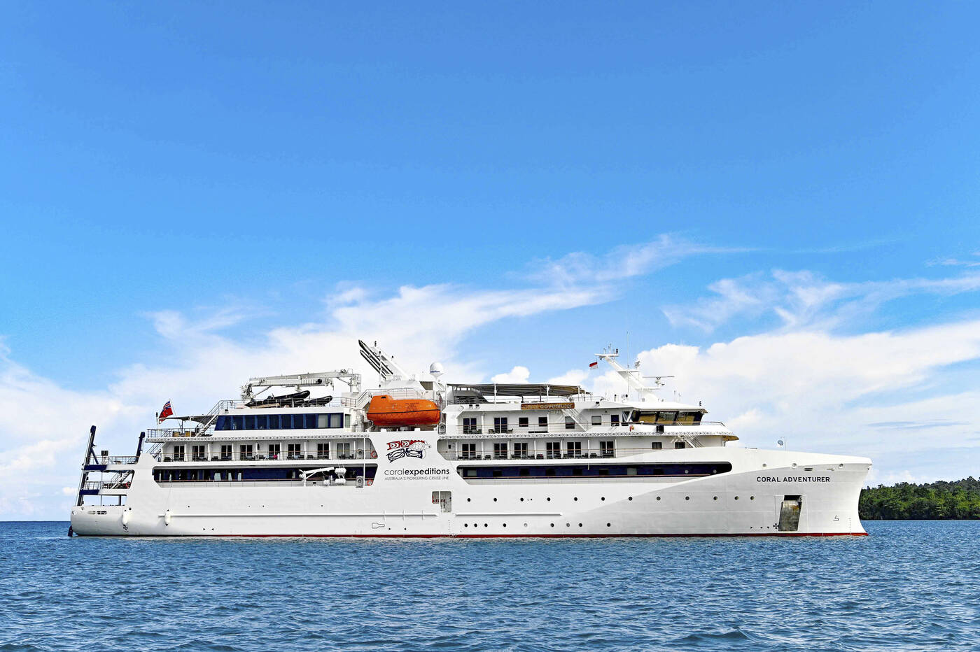 Die Coral Adventurer, die im April 2019 vom Stapel gelaufen ist, ist ein Expeditionsschiff, das speziell für den Zugang zu abgelegenen Wildnisgebieten konzipiert wurde, die für große Kreuzfahrtschiffe oft unzugänglich sind. Die Coral Adventurer verfügt über großzügige Räumlichkeiten, die vom Innenarchitekturbüro Arkhefield aus Brisbane entworfen wurden und vom australischen Ethos des Unternehmens und den weitläufigen Gebieten, die das Schiff besucht, inspiriert sind. Die leichten, doppelten Xplorer-Expeditionsbeiboote, ein weiteres Markenzeichen aller Coral Expeditions-Schiffe, erweitern die Möglichkeiten des Schiffes tiefere Erkundungen bei Landausflügen zu unternehmen. Diese „Safari-Jeeps“ des Meeres sind schnell, robust und komfortabel und wurden entwickelt, um ein einfaches Verlassen des Schiffes und eine bequeme Ausschiffung an abgelegenen Stränden zu ermöglichen. Die Coral Adventurer verkörpert die australische Philosophie des Abenteuers und der Entspannung und der Wertschätzung für die Natur und ist gleichzeitig groß genug für eine komfortable Seereise.