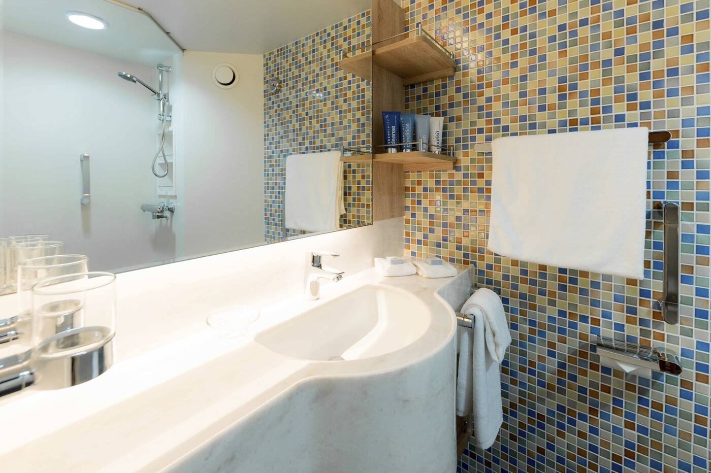 - Kat. B = Promenade Deck Stateroom, Zweibettkabine | Deck 3 | ca. 17 m² // Doppelbett (kann separiert werden), Fenster, Dusche/WC, Stuhl, ausreichend Stauraum