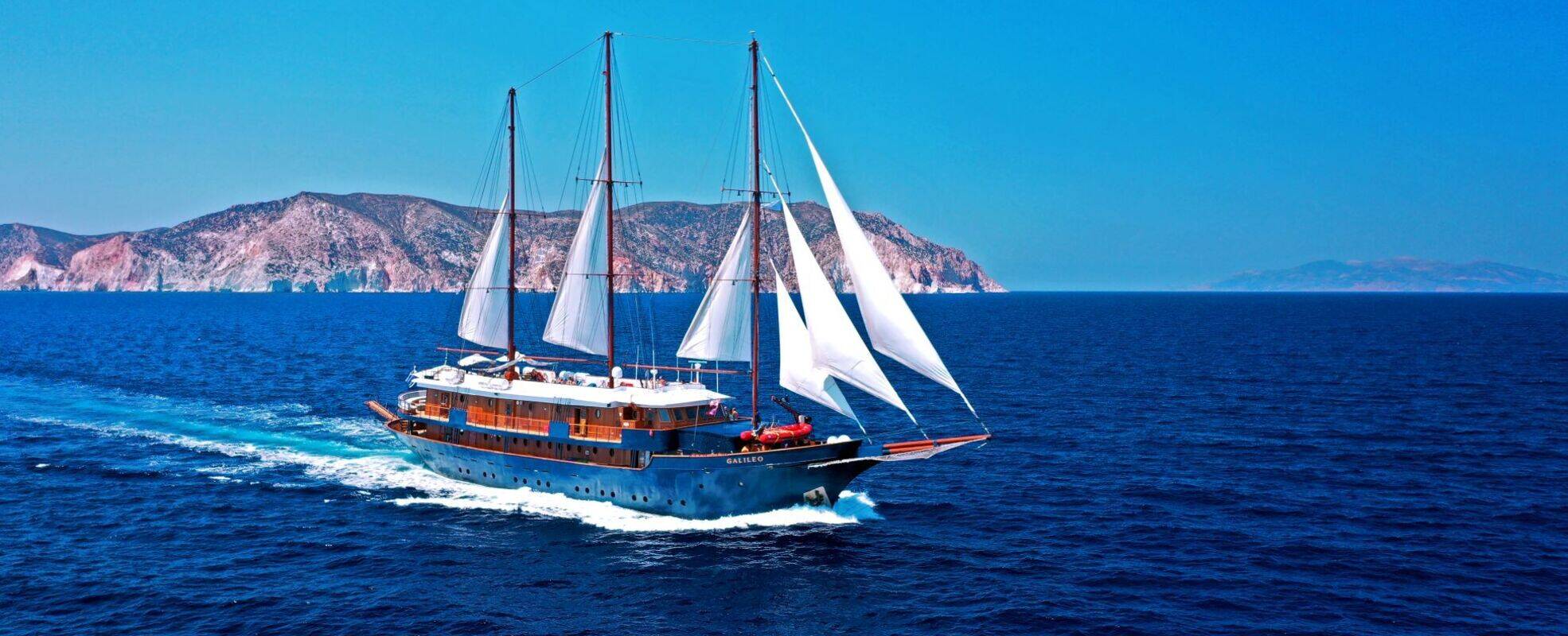 Die GALILEO verführt ihre ausgewählten 49 Gäste mit ihren klassischen Linien und holzgetäfelten Lounges und definiert damit neu, was Yachting sein sollte. Eine Lounge mit viel Platz, mit warmen Farben dekorierte Essbereiche, eine reichhaltige Bibliothek und zwei Decks zum Sonnenbaden, schattige Bereiche und eine Bar mit Liegestühlen im Freien sind nur einige der Elemente, die ihr Wesen ausmachen. Genießen Sie die Freiheit, wenn die GALILEO ihre weißen Segel setzt und sich von den Winden des Meeres tragen lässt.
