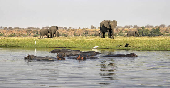Transfer zurück nach Kasane, am Rande des großartigen Chobe-Nationalparks gelegen. Nachmittags eine (inkludierte) Safari im Boot die Uferbänke entlang. Ein beeindruckendes Schauspiel, wenn hunderte von Elefanten am Ufer stehen, ihren Durst löschen und Spaß beim Baden haben. Flusspferdherden liegen dicht aneinandergedrängt im Wasser, riesige Krokodile sonnen sich auf den Sandbänken. An Tag 9 vor- und nachmittags Zeit für weitere optionale Safaris.
