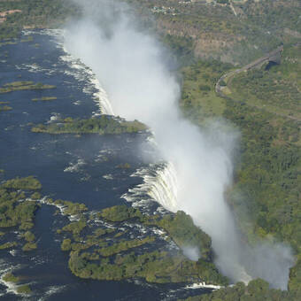 Fahrt in die Grenzstadt Kasane, hier wird das Fahrzeug abgestellt (Flughafen o. bei der Unterkunft). Dann Transfer über die Grenze nach Victoria Falls/Zimbabwe. Spätnachmittags in Eigenregie eine Wanderung an den Fällen entlang (Eintrittsgebühren ca. USD 30,- p.P.). Atemberaubend auch der Blick auf die Fälle aus der Vogelperspektive während eines optionalen Hellikopterrundfluges. (Wer etwas mehr Zeit hat, sollte hier unbedingt einen zusätzlichen Tag in Erwägung ziehen.)