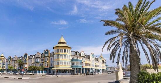 Heute geht es weiter. Der Reisetransferservice bringt uns sicher durch den Namib Naukluft-Park und den Kuiseb-Canyon in Richtung Atlantikküste nach Swakopmund. Sicherlich reisen auch andere Gäste, die wir in der Lodge kennengelernt haben, mit in den Lieblingsferienort der Einheimischen (ca. 6 Std.). So können wir uns über die ersten Eindrücke austauschen, haben Spaß zusammen und die Fahrt vergeht rasch. In Swakopmund angekommen, beeindrucken uns schöne Gebäude wie das Amtsgericht und das repräsentative Woermann-Haus, errichtet um 1903. Sie prägen das Kleinstadtbild. Schmucke Cafés und erstklassige Restaurants laden zu kulinarischen Spezialitäten ein. Fischgerichte und Meeresfrüchte werden frisch zubereitet. Unser buntes, etwas flippiges, aber sehr schöne und moderne Hotel liegt so, dass wir fußläufig unterwegs sein können.
