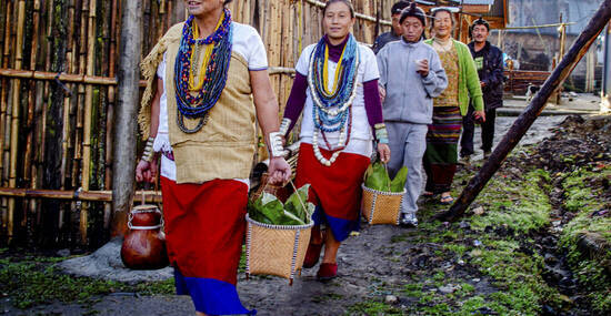 Nach dem Frühstück Besuch der buddhistischen Gompa von Itanagar, ein neuer, wunderschöner Schrein mit gelben Dächern. Er erhebt sich auf einem gut gepflegten Gelände hinter einem Stupo-Baum, der von Seiner Heiligkeit dem Dalai Lama gepflanzt wurde. Wir besuchen auch den örtlichen Markt, auf dem Einheimische in ihrer Tracht lokale Produkte verkaufen. Anschließend fahren wir nach Ziro (120 km, ca. 3 Std.) in das Gebiet des Apatani-Stammes. Die Apatani leben in perfekter Harmonie mit der Natur und sind bekannt für ihre Reisanbau-Kultur.