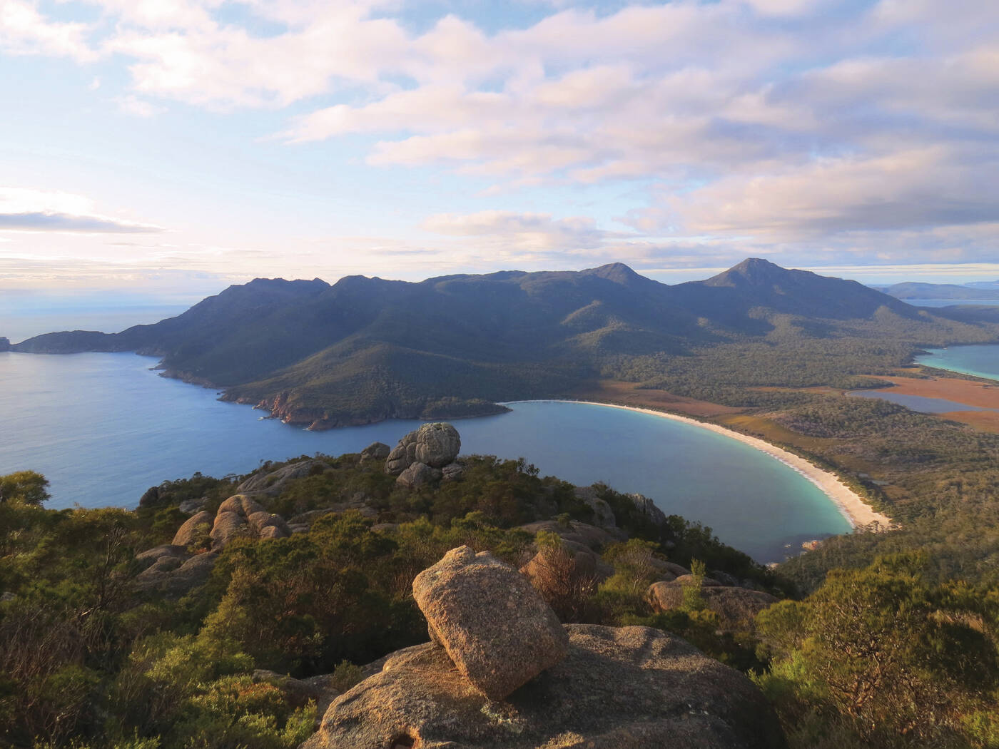 Der Tag startet mit einem Stopp im historischen Städtchen Richmond, das bekannt ist für seine gut erhaltene gregorianische Architektur und Australiens ältester Sandsteinbrücke, erbaut von ehemaligen Sträflingen. Die Reise führt uns weiter entlang der sonnigen Ostküste Tasmaniens vorbei an den malerischen Küstenstädtchen wie Orford, Triabunna und Swansea, bevor wir die Freycinet Halbinsel erreichen. Wenn es die Zeit erlaubt, machen wir noch einen kleinen Abstecher zum wunderschön gelegenen Friendly Beaches, bevor wir zur Unterkunft im Nationalpark fahren.