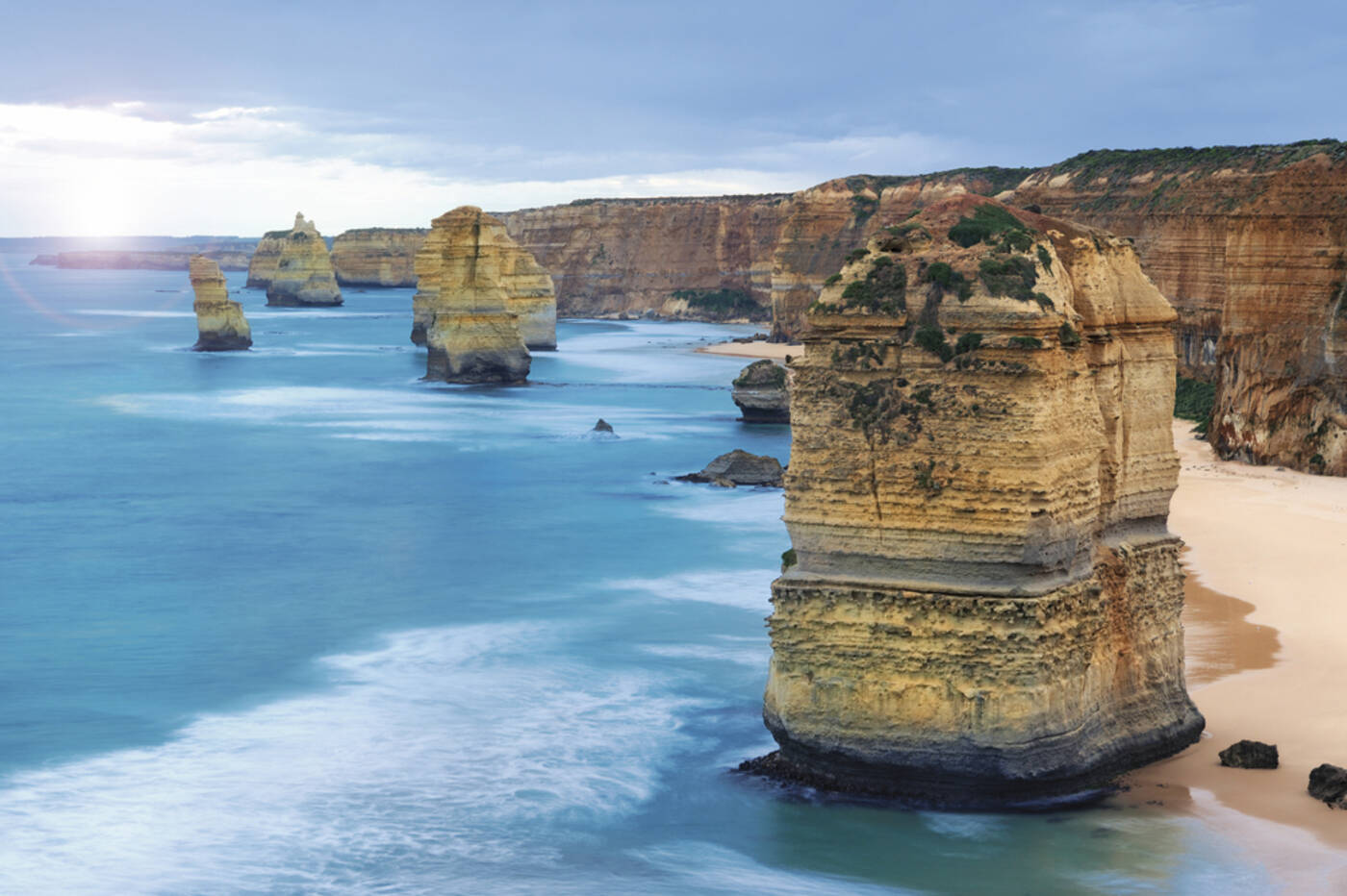 Wir verlassen Melbourne Richtung Westen und kommen sehr bald zur berühmten Great Ocean Road, einer der schönsten Küstenstraßen der Erde. Wir passieren idyllische Küstenstädtchen und halten an spektakulären Felsformationen wie Loch Ard Gorge und die Zwölf Apostel, die im Laufe der Jahrtausende bizarr von Wind und Meer aus dem Fels geschliffen wurden. Durch Warrnambool und das pittoreske Port Fairy geht es bis zum Tagesziel Mount Gambier.