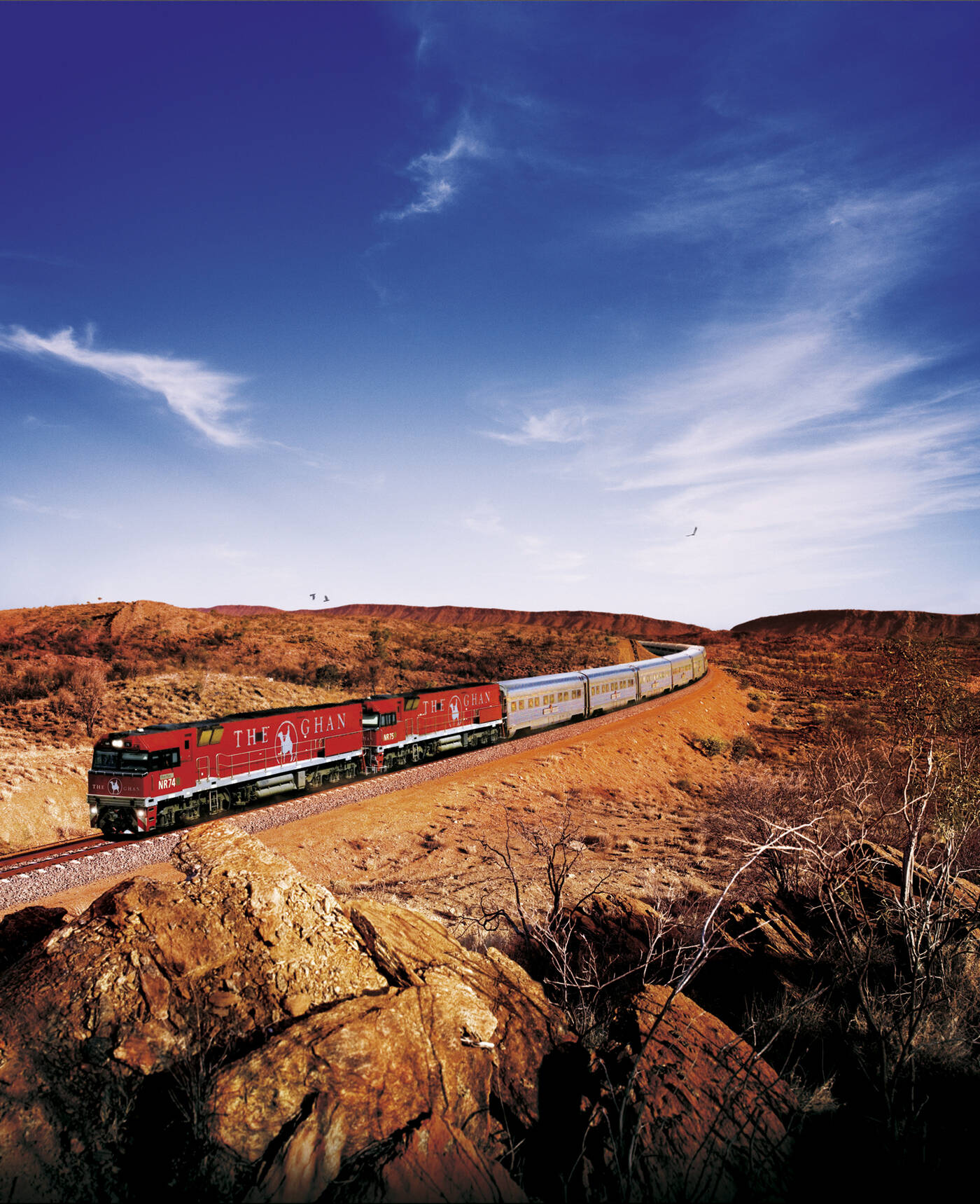 - als Besonderheit die Zugfahrt mit dem legendären Wüstenzug, dem „GHAN“ von Alice Springs nach Darwin, mit Übernachtung im Schlafwagen in der Kategorie "Gold Class"