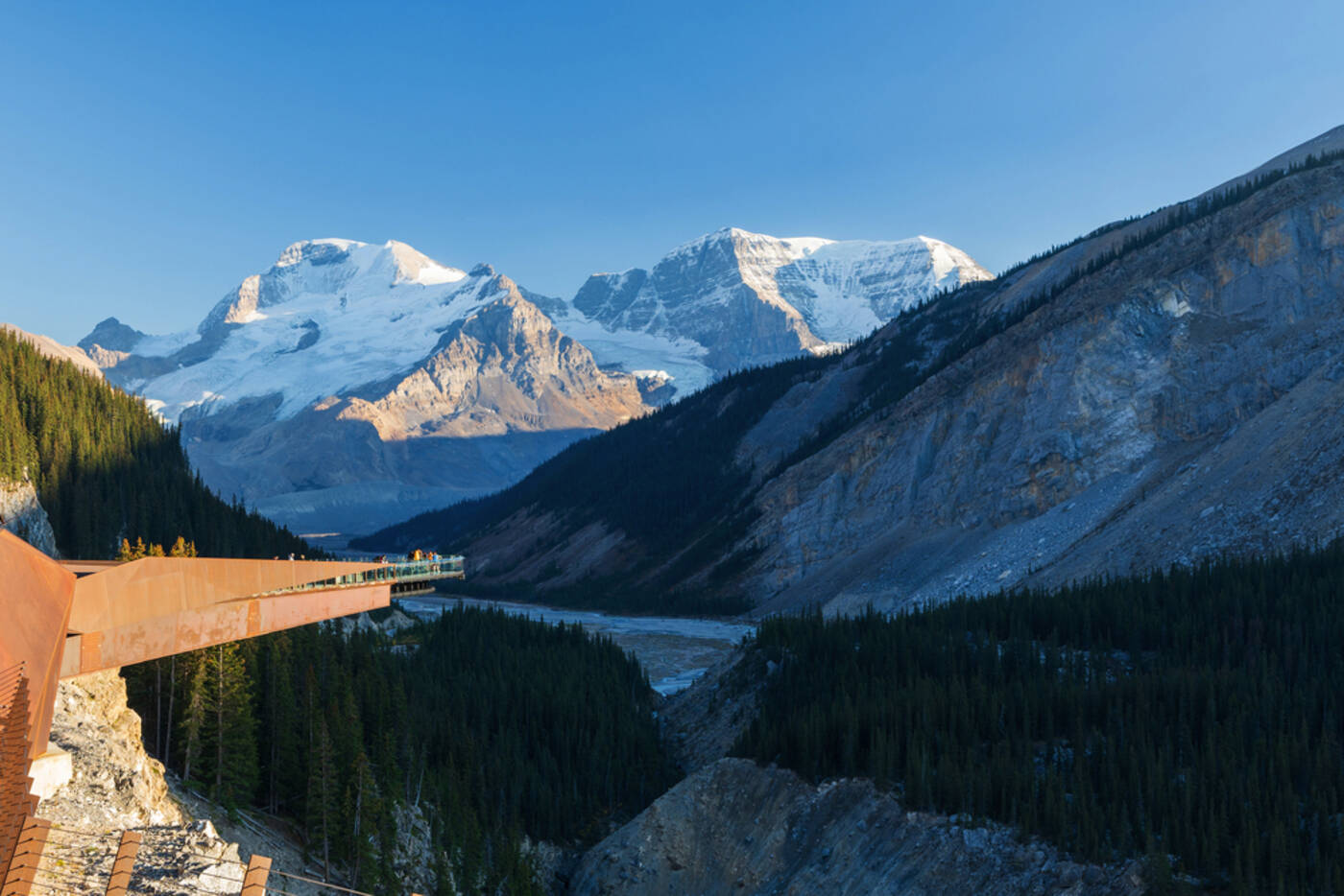 Ein weiteres Juwel der Rocky Mountains steht heute auf dem Programm: Lake Louise - ein von hoch aufragenden Gipfeln umrahmter See. Danach ein kurzer Abstecher über den Kicking Horse Pass zum Yoho Nationalpark. Auf der Fahrt wird ein Stopp bei den Spiral Tunnels eingelegt, wo wir mit etwas Glück einen der endlos langen kanadischen Frachtzüge beobachten können, die mehrmals täglich den „Big Hill“ durch Tunnel und Serpentinen bewältigen. Stopps bei Natural Bridge und am Emerald Lake sind ebenfalls vorgesehen. Weiter geht es über die einzigartige Panoramastrsasse auf dem Icefield Parkway. Abendessen und Übernachtung im The Crossing Resort, am Fuße des Mount Wilson, umgeben von imposanten Bergketten.