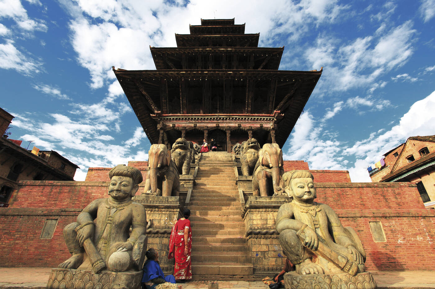 Fahrt nach Telkote. Etwa zweistündige Wanderung zum Tempel Changunarayan, dem ältesten Vishnu-Tempel des Königstals. Nach der Besichtigung Weiterfahrt nach Bhaktapur. Besichtigung der dritten Königsstadt und UNESCO-Weltkulturerbe mit Durbar Square und Palastbezirk, Tempeln, Gedenksäule, dem Goldenen Tor und einzigartigen mittelalterlichen Genre-Bildern. Rückfahrt nach Kathmandu.
