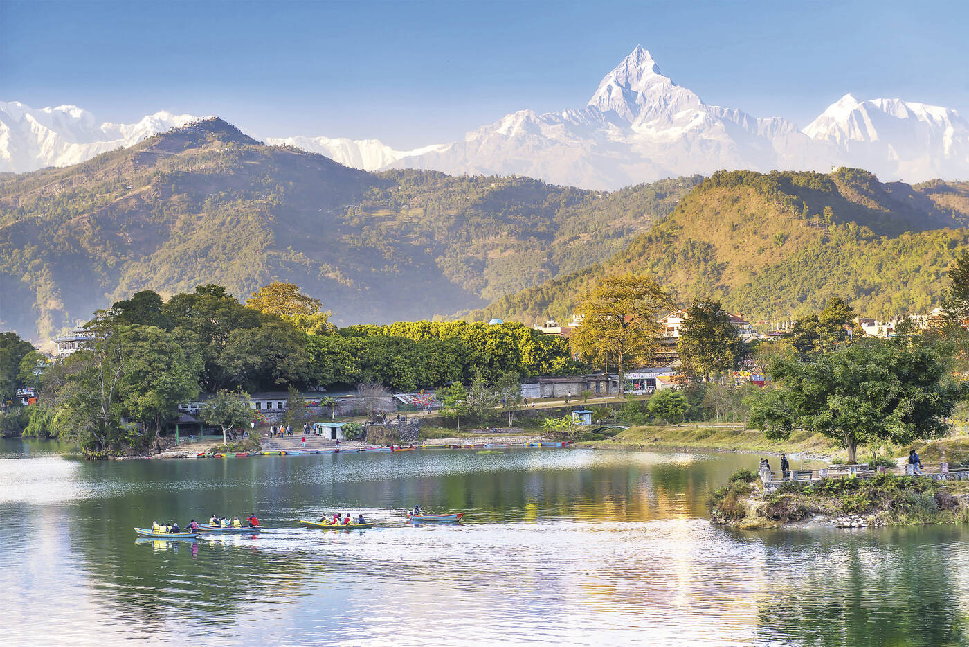 Am frühen Morgen eine kurze Fahrt nach Sarangkot, wo wir hoffentlich einen wolkenlosen Sonnenaufgang erleben, der uns einen Blick auf die mächtige Annapurna-Gebirgskette bietet. Im Anschluss unser Aufstieg zur großen Shiva-Statue. Von dort führt uns ein schöner Wanderweg zur World Peace Pagoda. Von der Plattform haben wir einen wunderbaren Blick über ganz Pohkara und den Phewa-See. Durch kleine Dörfer unser Abstieg zurück ins Tal. Hier besuchen wir die Davis-Falls und das International Mountain Museum. Am Nachmittag erwartet uns eine Bootsfahrt auf dem herrlichen Phewa-See.