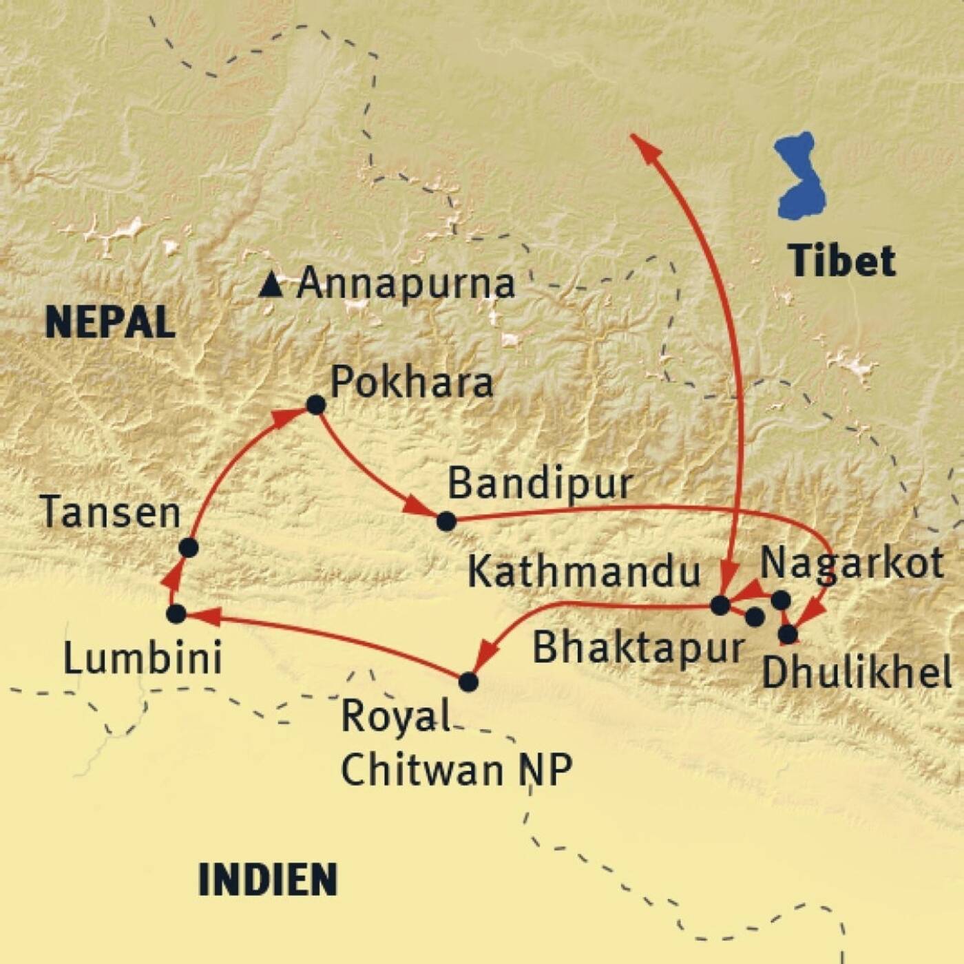 Kathmandu - Chitwan Nationalpark - Lumbini - Tansen - Pokhara - Bandipur - Dhulikel - Nagarkot - Kathmandu