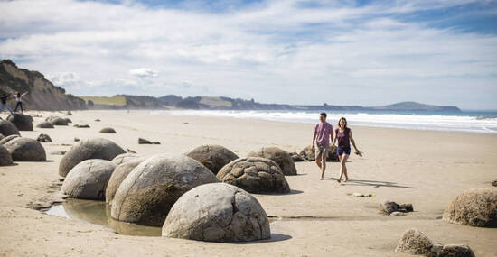 Eine kurze Rundfahrt durch Dunedin lässt erahnen, wie reich die Stadt zur Zeit des Goldrauschs in der zweiten Hälfte des 19. Jahrhunderts war. Viele stattliche Bauten stammen aus dieser Zeit. Anschließend folgt die Route der Ostküste nach Norden, um bei Moeraki mysteriöse Steinkugeln am Strand in Augenschein zu nehmen. Die Entstehung der monströsen Moeraki Boulders gibt bis heute Rätsel auf. Wir spazieren zum Wasser um die „Riesenmurmeln“ in Augenschein zu nehmen! Bei Oamaru, einer einst bedeutenden Hafenstadt, biegt die Reiseroute ab ins Landesinnere, durch das weite Tal des Waitaki River und in das dünn besiedelte Hochland des seit Pioniertagen legendären Mackenzie Country. Übernachtet wird mitten in dem nur dünn besiedelten Hochland des Mackenzie Country in einer ursprünglichen Lodge idyllisch am Lake Ohau gelegen. (ca. 280 km)